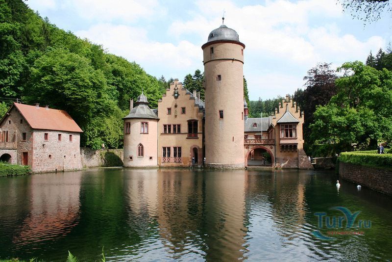 Замок Меспельбрунн считается одним из самых прекрасных замков в Германии. Он расположен на живописном берегу небольшого озера посреди лесистой местности между Франкфуртом и Вюрцбургом, на территории города Меспельбрунн. Недалеко от замка, который возведен между рядами великолепных деревьев, проложено несколько изящных тропинок и маршрутов для пешеходов. Замок Меспельбрунн, часто упоминаемый в туристических путеводителях, пользуется популярностью у посетителей. Особенно в теплые месяцы здесь можно увидеть целые толпы визитеров со всего света. Замок – частная собственность семьи графов Ингельхайм (Ingelheim). Семейство обитает в южном крыле, тогда как другие крылья и залы замка открыты для общественного посещения. Возле стоянки замка есть очень хороший ресторан, где можно посидеть и полюбоваться видами Меспельбрунна.
