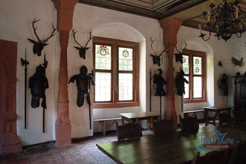 Все парадные помещения замка небольшие, камерные, уютные и совсем не похожи на музейные залы. Там и сям «разбросаны» вещи, живые цветы в вазах создают абсолютно жилую атмосферу. Кроме того, Меспельбрунн никогда не был парадной резиденцией, все 600 лет он служил исключительно летним загородным домом.