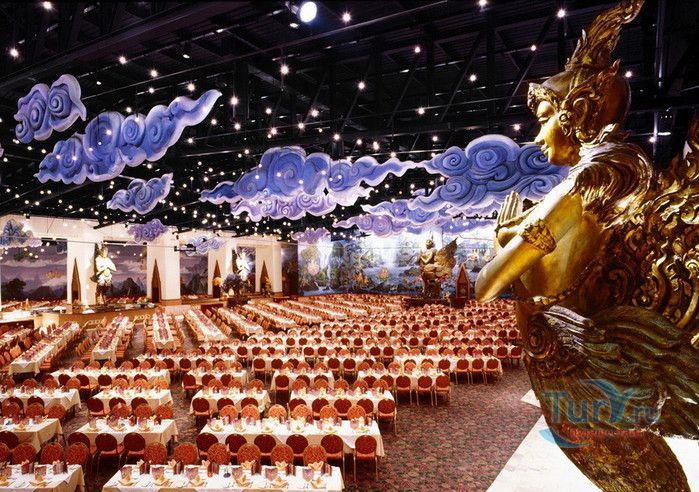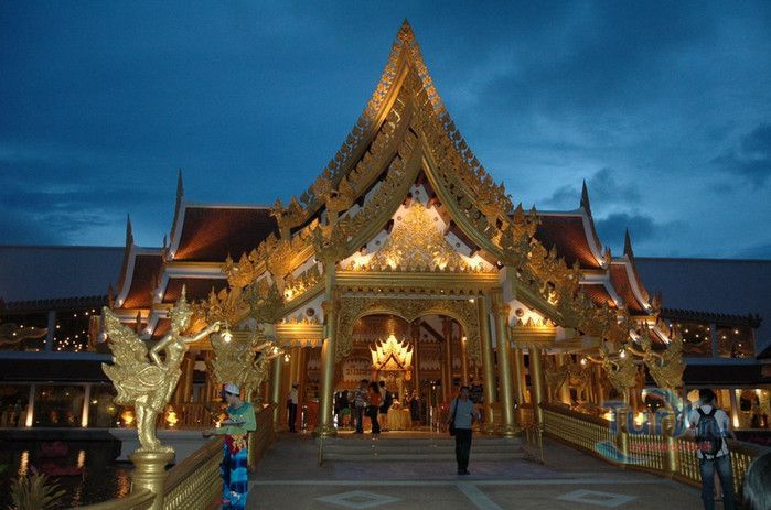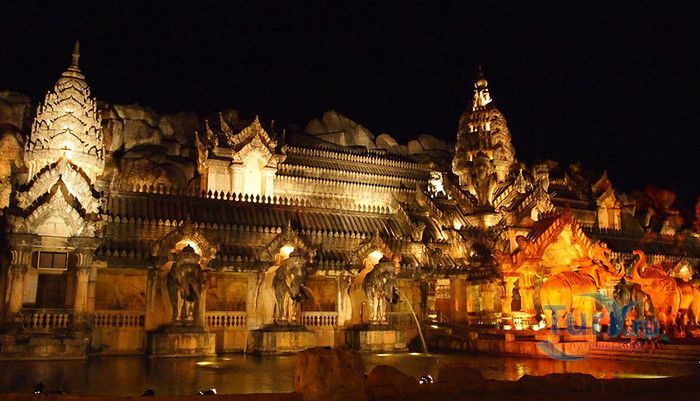Огромный парк, где разместился ультрасовременный развлекательный комплекс. В парке Вы увидите грандиозное шоу слонов, музыкальные фонтаны со спецэффектами, национальные танцы, бокс-шоу, иллюзион-шоу. Каждый вечер на сцене театра-дворца происходит грандиозное шоу. Беспрецедентный по своим масштабам спектакль включает пиротехнические и компьютерные эффекты, воздушный балет, акробатику и цирк слонов. Каждое представление длится 1 час 20 минут. В них принимают участие 400 человек, 50 слонов, 10 тигров, 200 птиц и 4 тайских буйвола. Красочное действо гарантирует незабываемые впечатления для зрителя любого возраста.