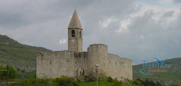 На холме, возвышающемся над селом Храстовле, стоит крепостная стена, из-за которой робко выглядывает колокольня с пирамидальной крышей. За стеной, спрятанная от посторонних глаз, стоит средневековая церковь с выступающей полукруглой стеной.