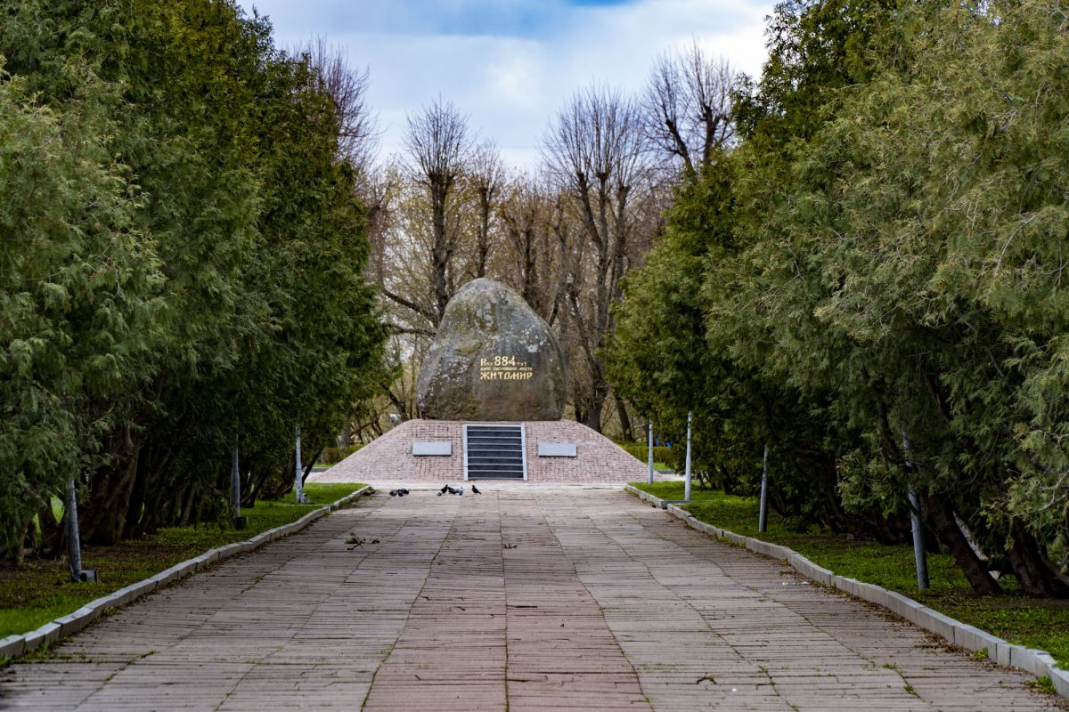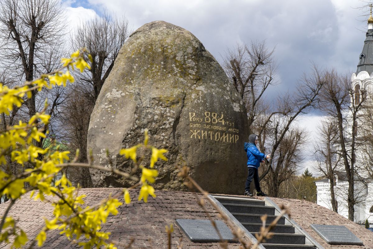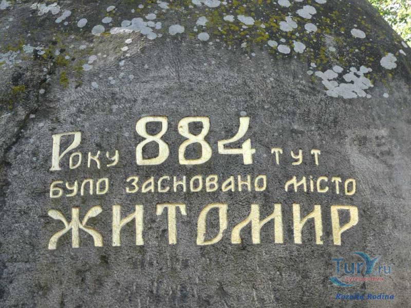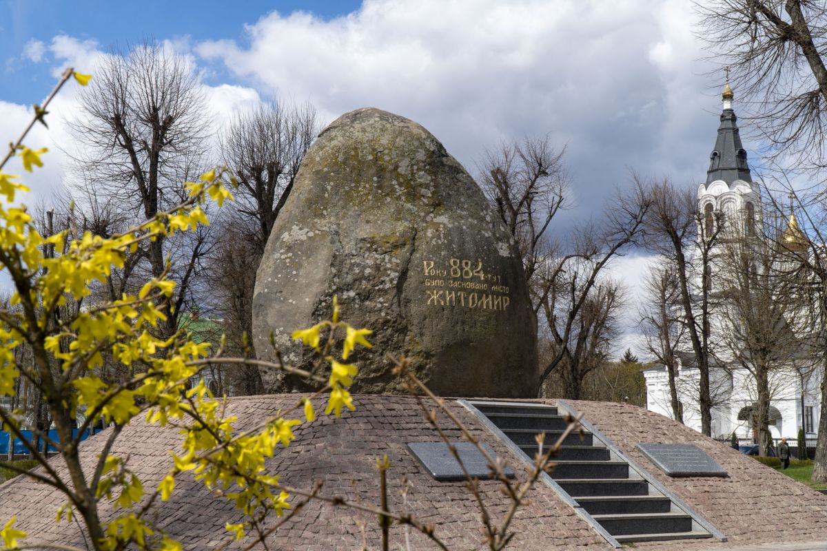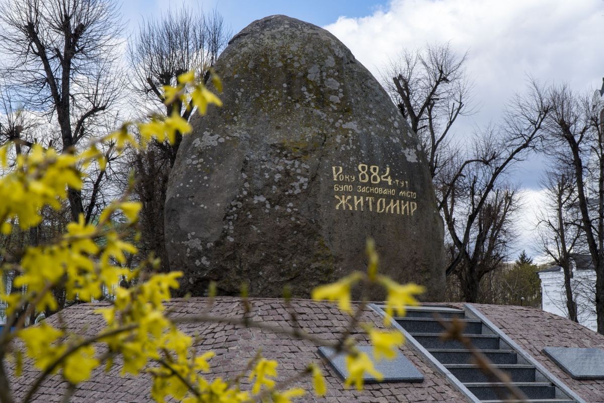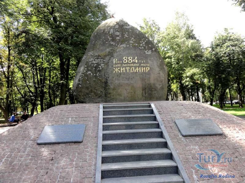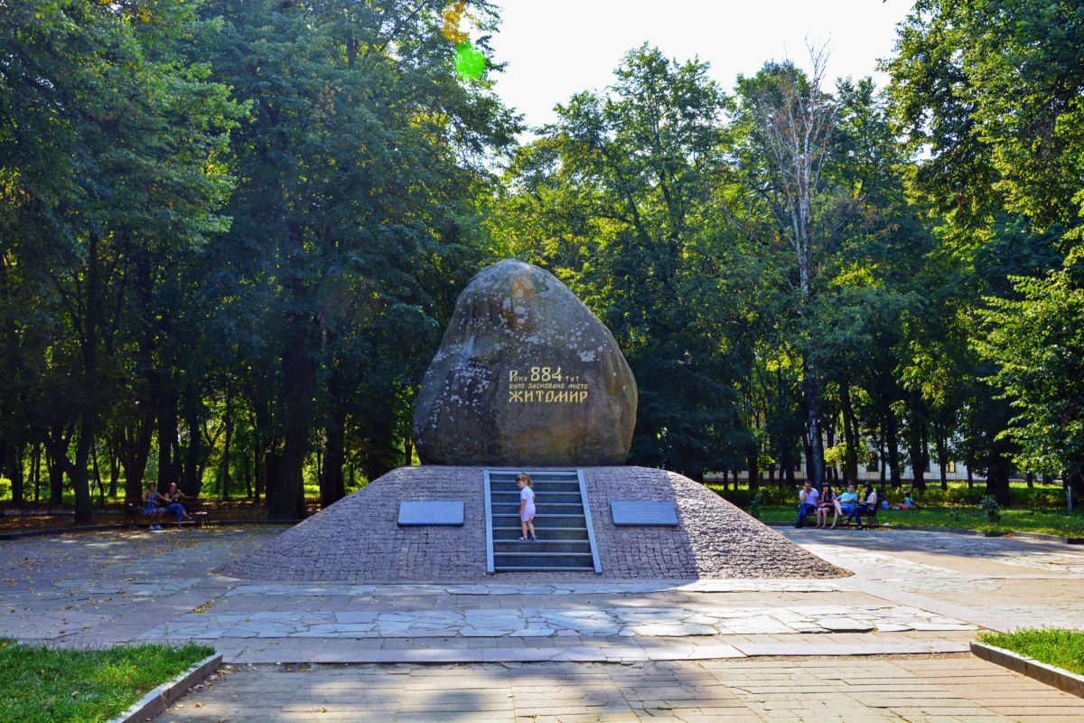 История Житомира отражена в многочисленных письменных источниках, архитектурных сооружениях, живописных полотнах, монументальных и скульптурных памятниках. Теперь ко всему этому добавили еще одну культурную достопримечательность - Знак в честь основания города. В исторической части Житомира, в сквере на Замковой горе, в месте откуда начинался Житомир, 4 сентября 1986 был установлен памятный монумент. Памятник поставили в честь 1100-летия основания города Житомира.