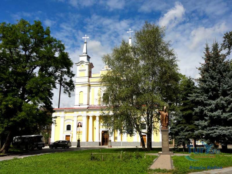 Кафедральная улица на Замковой горе - древнейшая улица города Житомира. Эта улица возникла у Замка на берегу реки Каменки и ведет свою летопись с древних времен. Ранее она называлась Киевской согласно своему направлению. Тогда она начиналась от замка и кончалась у главных городских ворот, которые располагались возле нынешнего 12-этажного дома, и были выполнены в виде крепостной башни из бутового камня с широким проездом. Изображение этих ворот сохранилось на гербе города Житомира. Ворота были в высоком земляном валу, защищавшим город со стороны нынешней Соборной площади, а перед валом находился глубокий ров, заполненный водой. Через ров к воротам для въезда в город был перекинут подъемный мост.