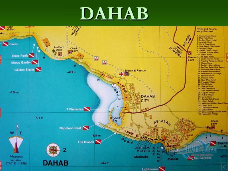 Дайв-сайт Golden Blocks расположен на восточном побережье Синайского полуострова в водах залива Акаба, в южных окрестностях Дахаба, чуть севернее рифа Moray Garden. Дайв-сайт Golden Blocks находится в южном оазисе Дахаба, на побережье долины Кенни-Валли, прямо у отеля Happy Life Village 3*, который является крайним отелем Дахаба с южной стороны.