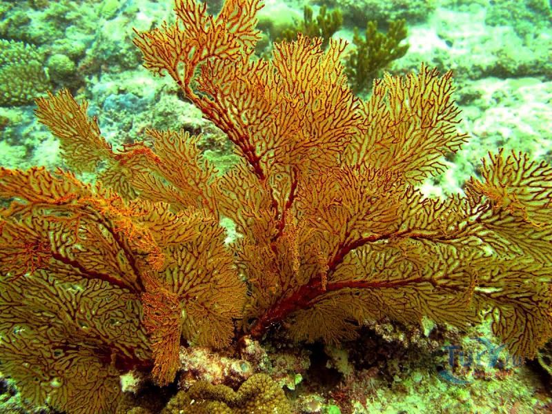 Дайв-сайт Golden Blocks, что в переводе означает "Золотые блоки", представляет собой две жесткие коралловые башни золотистого цвета, которые и дали ему такое название. Спуск осуществляется по песчаному склону, где после прохождения многочисленных областей морской травы, взяв чуть на север, на глубине 16 -20 метров с рифа слева можно достичь золотой башни. Блок буквально усеян большими колониями горгонарии. Если у вас есть достаточно воздуха и сил Вы можете, не возвращаясь к отправной точке, продолжить свое путешествие на юг к дайв-сайту Moray Garden, чтобы посмотреть рифовые стены, коралловые сады, коралловые плато и песчаные отмели, на которых обитают разноцветные подводные жители. Дайв-сайт Moray Garden находится всего в нескольких сотнях метров от дайв-сайта Golden Blocks. Добраться до него можно вплавь, двигаясь все время вдоль берега на юг.