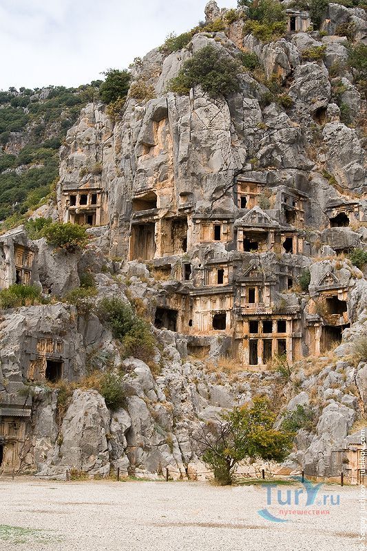 Как известно, территория Турции до нашей эры принадлежала грекам. Ми́ра— город в конфедерации древней Ликии. Территориально город был расположен рядом с современным небольшим городом Демре в Турции (провинция Анталья), в 5 км от берега Средиземного моря. От города сохранились развалины великолепного греко-римского театра и высеченные в скалах гробницы. У народов Ликии существовал обычай хоронить мёртвых на возвышенных местах, так как предполагалось, что это поможет им попасть на небо.