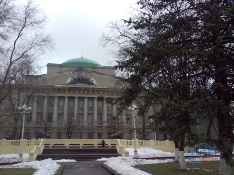 Ростовская контора Государственного банка во исполнение решения Государственного Совета, высочайше утвержденного императором Александром II, была открыта 17 июля (по старому стилю) 1862 года. Она была одной из 7 контор Государственного банка, открытых к этому времени в Российской империи. Но размещалась она совсем в другом здании - в двухэтажном доме в центре города. С увеличением операций штат сотрудников вырос и помещений стало не хватать. Проект нового здания разработан в 1910г. известным русским архитектором и инженером М.М.Перетятковичем и считался одним из лучших его творений. Начато строительство 28 апреля 1913 года и продолжалось до 1915 года. Через пять лет было достроено южное крыло, предназначенное под квартиры служащих. Здание было построено в архитектурных традициях неоклассицизма начала XX столетия с характерной для него симметричностью композиции. Но при строительстве произошёл интересный казус. Фасад здания был спроектирован на улицу Большая Садовая (центральная), но места для постройки было недостаточным. За снос соседних зданий городская Дума запросила с банка непомерную сумму. Банкиры развернули здание фасадом на Средний проспект где места было достаточно (сейчас проспект Соколова) и для монументальности соорудили напротив входа архитектурный ансамбль со львами, лестницей и фонтаном. В 20-е годы Контора Государственного банка в г. Ростове-на-Дону имела статус Краевой конторы. В период с 1924г. по 1937г. в связи с неоднократным территориальным делением происходила и реорганизация Конторы. В 1924г. она была преобразована в Северо-Кавказскую, затем в Азово-Черноморскую, а в 1937г в Ростовскую областную контору Государственного банка СССР. В октябре 1941 г. в связи с угрозой немецко-фашистской оккупации Ростовская контора Государственного банка СССР была эвакуирована в г. Ашхабад, после освобождения возвращена в г. Ростов-на-Дону, и в 1943г. вновь возобновила свою деятельность. Здание Госбанка в Ростове-на-Дону – единственное уцелевшее в годы Великой Отечественной войны. Лишь геральдическая композиция на аттике вместо двуглавого орла был заменена гербом СССР. Композицию и дореволюционную надпись восстановили в изначальном виде в 1994-м. За счет кредитов Государственного банка СССР строились кинотеатры, парки культуры и отдыха, формировалась социальная инфраструктура области. В настоящее время в здании по-прежнему, сохраняя преемственность поколений, располагается структура Банка - Главное управление Центрального банка Российской Федерации по Ростовской области.