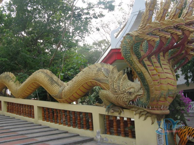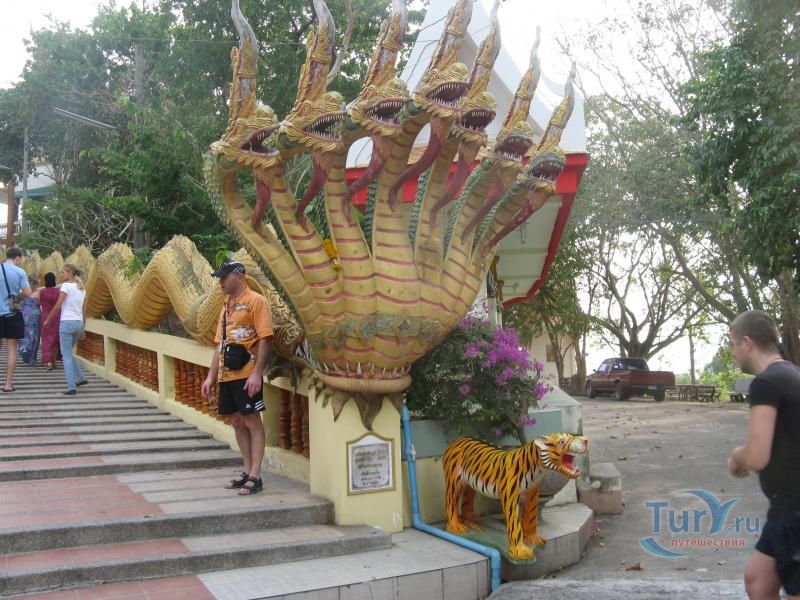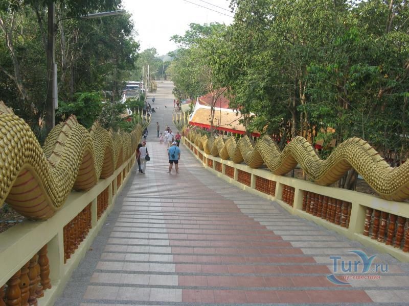 На площадке перед подъёмом продают птиц в клетках, которых поднявшись на вершину выпускают на волю - «на счастье». Далее - длинная красивая лестница в 120 ступеней, на всем лестничном пролете расположены мифологические золотые семиглавые змеи (Наг) - обитатели тайских святилищ. Пройдя все ступени и повернув налево увидите небольшой храм для молитвы. У входа снимается обувь, вносятся пожертвования в специальную ёмкость для сбора денег, можно выбрать аромопалочки, цветы. Цветы кладут на тарелку, а аромопалочки зажигают на специальной подставке. Внешний ритуал соблюдён, внутренний — на ваш выбор.