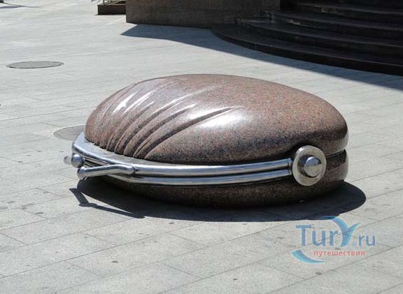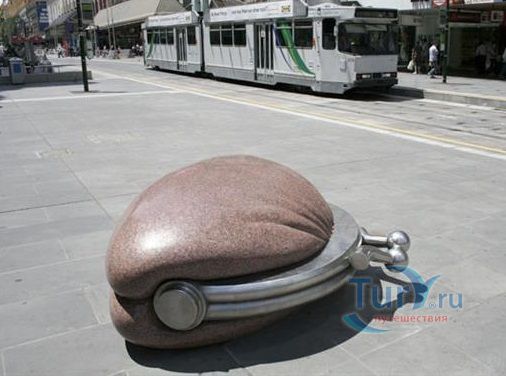 В австралийском городе Мельбурн напротив бывшего здания городского глав почтамта, переоборудованного в торговый центр с дорогими бутиками и прочими магазинами лежит очень похожий каменный кошелек.