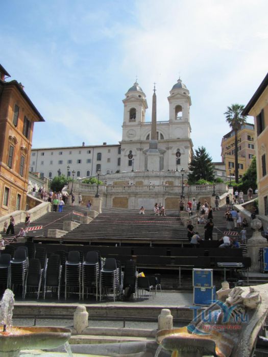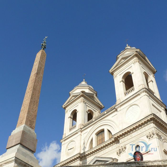 Композиция театрального вида лестницы, состоящей из 12 пролетов, расходящихся и вновь соединяющихся, начинается у Испанской площади и заканчивается на вершине холма фасадом церкви Святой троицы (Тринита-деи-Монти) и Саллюстиевым обелиском, найденным в Саллюстиевых садах и водруженным на холме в 1789 году Антинори по желанию Папы Пия VI. Интересна история создания этого шедевра.