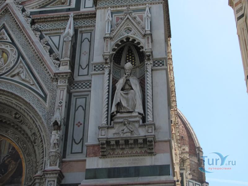Собор Санта Мария дель Фьоре находится в центре древнего города. Мраморное здание собора с резьбой завершается огромным куполом ржаво-красного цвета. Размеры Дуомо поражают воображение: 153 метра в длину и 90 метров в ширину. Сегодня Санта Мария дель Фьори является четвертым по величине собором мира, уступая только Собору Святого Петра в Ватикане, Собору Святого Павла в Лондоне и Миланскому Дуомо.