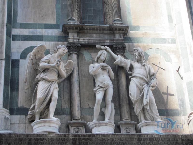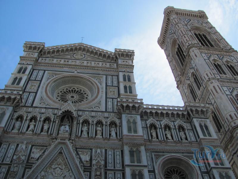 Строительство этого самого известного собора Флоренции началось в 1294 году и продлилось 81 год. В возведении собора принимали участие лучшие архитекторы своего времени: Джотто, Арнольфо ди Камбио, Андреа Пизано. Однако всемирную известность собору принес восьмигранный купол работы Филиппо Брунеллески 1420–1436 годов. Вершину купола на высоте 91 метра венчает шпиль с шаром, который поднимали туда посредством машины, созданной Микеланджело. Отделка фасада храма в белой, розовой и зеленой гамме закончилась только к 1887 году, когда Флоренция была столицей Италии.