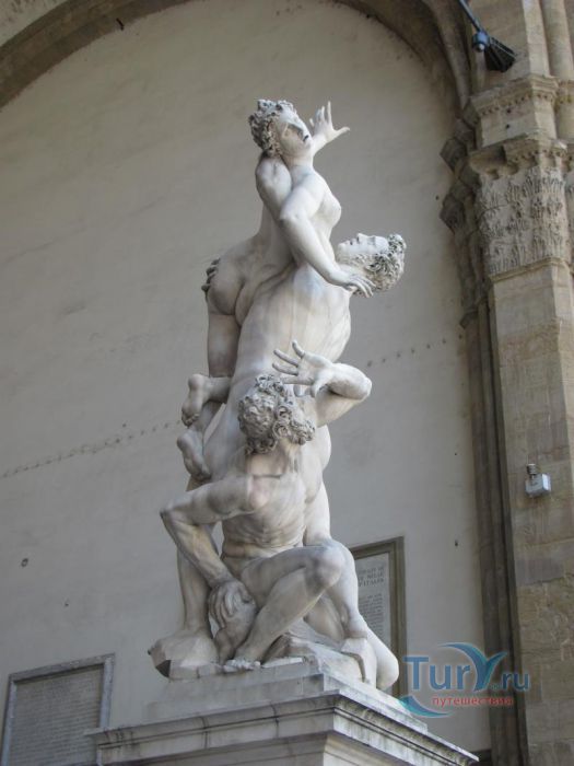 В центре площади находится Фонтан Нептуна и конная статуя Козимо I Медичи. Здесь Вы можете полюбоваться такими скульптурами, как «Персей» - творение рук Челлини и, конечно же, безупречным Давидом, создателем которого является Микеланжело. Правда, на площади поставили копию скульптуры, а саму ее поместили в музей. Окружают площадь здания постройки XIV-XVI веков, такие как, например, Торговый Суд и Палаццо Угуччони.