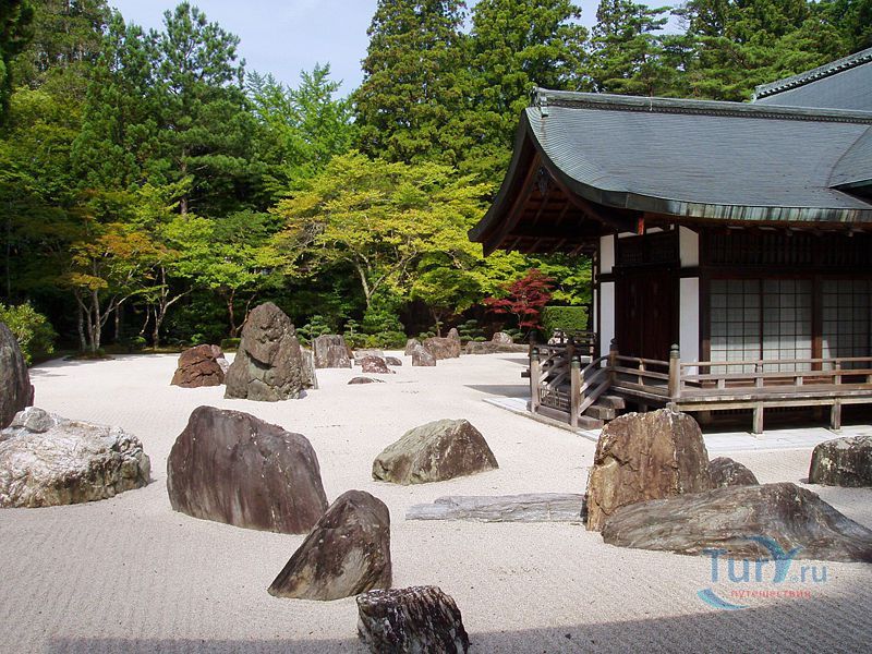 Кингобудзи – главный храм на Коя. Построен в 1592 году. Особо привлекают внимание его рододендроны и раздвижные двери внутренних помещений расписанные художниками.