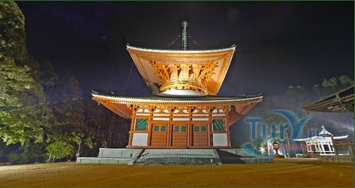 Великолепные комплекс Дандзёгаран, включает самое старое из всех находящихся на горе зданий, Фудодо (зал Фудо) построен в 1197 году, и Компон дайто, великолепную ало-белую пагоду. Перестроенная в 1937 году, эта пагода считается символом горы Коя.