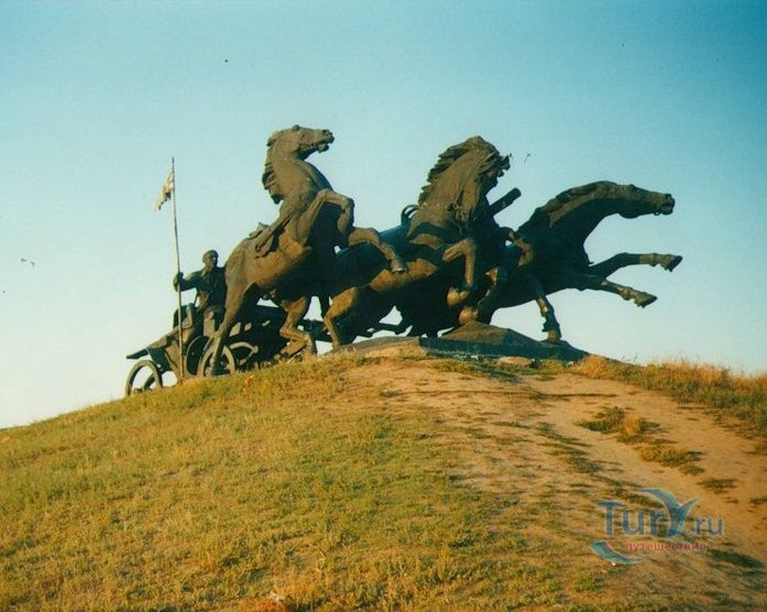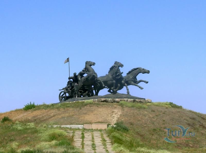 Украина, город Каховка, памятник Легендарной тачанке. Скульпторы Л. Родионов, Ю. Лоховинин, Л. Михайленок. Архитектор Е. Полторацкий. 1967.