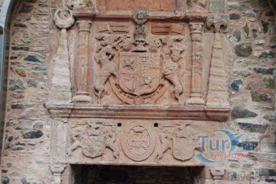 В архитектурном плане замок представляет собой хорошо сохранившиеся пять этажей башни с прилегающим большым залом и вспомогательные здания. Области на которых можно увидеть украшения фасада. Первоначально назвался Стразбогиской крепостью, которая была предоставлена г-н Адам Гордон из Хантли 14-го века. Король Роберт Брюс был гостем замка в 1307 году.
