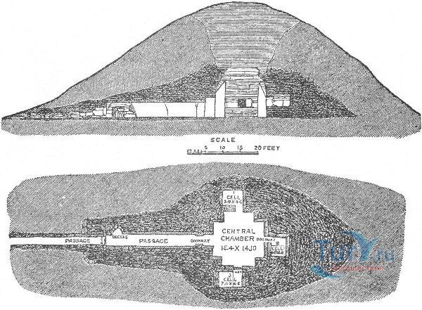 Мейсхау - одна из крупнейших гробниц в Оркнее. Поросший травой курган скрывает комплекс коридоров и камер, сооружённых из тщательно обработанных плит слюдянистого песчаника массой до 30 тонн. Расположен таким образом, что задняя стена центральной камеры, грубый куб, опирающийся на стену с кронштейнами, освещается во время зимнего солнцестояния. Подобная же картина наблюдается в коридорной гробнице Ньюгрейндж.