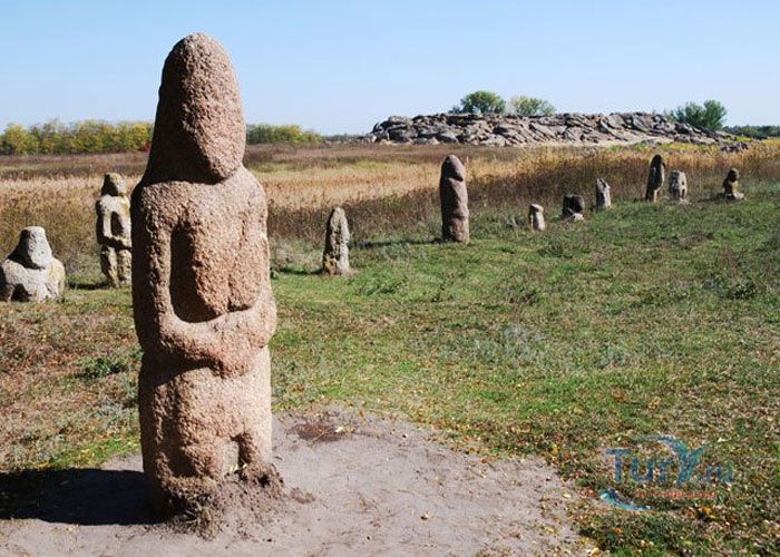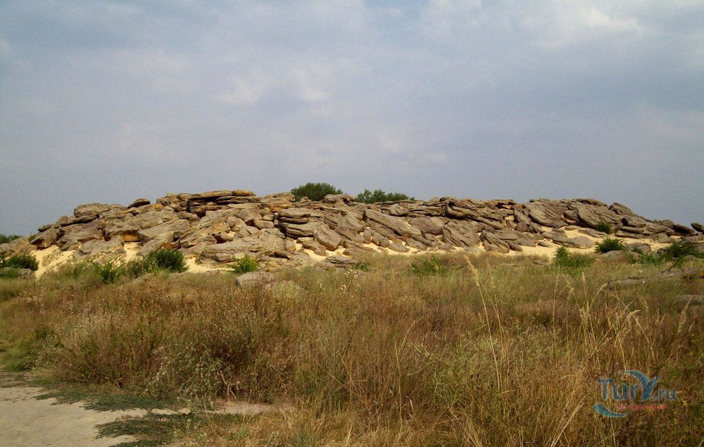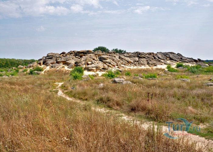 В степи, недалеко от поселка Мирное Мелитопольского района, есть огромный каменный холм диаметром почти в километр. С давних времен кочующие племена знали, что высокие курганы в степи - это могилы предков, поэтому холм и назвали "Каменной могилой". На самом деле, холм - это исключительно природное образование. Глыбы песчаника, обветренные за миллионы лет, приобрели разнообразные и причудливые формы создавая впечатление молчаливой величавости. Вокруг холма археологи уже почти два века находят на холме и вокруг него остатки древних поселений и странные рисунки, но самый большой интерес представляют гроты и пещеры, в которых древние люди оставили несколько тысяч рисунков - петроглифов. В основном рисунки наносились на песчаник не красками, а протирались куском твердого камня. Они образовывали углубления, которые лишь иногда покрывались минеральными черными и красными красками. Уникальность памятника состоит в том, что тут пересекаются рисунки разных исторических эпох - от эпохи позднего палеолита до средневековья. Каменная Могила, возвышаясь в Приазовской степи вблизи города Мелитополя, феноменальна сама по себе в человеческом понимании. Она древнее Стоунхенджа, египетских пирамид и всех зиккуратов Востока. Потому и была она на протяжении многих тысячелетий "Меккой" древних жрецов, которые оставили здесь сакральные знаки своей религии.
