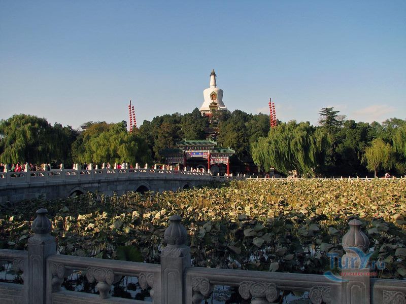 Парк Бэйхай представляет собой традиционный китайский сад, расположенный к северо-западу от бывшего императорского дворца "Запретный город", в центре столицы Китая. Он считается одним из крупнейших китайских садов, в котором расположено много исторических строений, храмы и дворцы. Парк Бэйхай построили в подражание знаменитым живописным местам и архитектурным объектам разных районов Китая. Примером для вдохновения творцов достопримечательностей этого императорского сада послужили искусно построенные каналы и павильоны в Ханчжоу и Янчжоу, изысканные строения в Сучжоу. Бэйхай дословно означает "Северное море". Имеются также в парке озёра Чжунхай "Среднее море" и Наньхай "Южное море". Вокруг этих двух озёр расположен комплекс зданий, в которых живёт высшее китайское руководство. Парк был заложен в 10 веке и считался императорским парком во времена правления династии Ляо, Цзинь, Юань, Мин и до падения династии Цин в 1911 году. С 1925 года парк был открыт для публичного посещения. Пейзажи и строения Парка Бэйхай являются шедеврами ландшафтного дизайна, которые отображают архитектурный стиль и искусство создания традиционного китайского сада. Больше половины территории парка занимает озеро, в центре которого расположен Нефритовый остров Цинхуандао. На вершине холма находится Белая Пагода "Пагода Бай Та", построенная из белого камня в тибетском стиле. Внутри Пагоды расположена императорская гробница с буддийскими писаниями, мощами и мантиями монахов и сосудами для милостыни. Неподалёку находятся буддистские храмы Чаньфу и Юйнань. На северном берегу острова находится дворец пяти драконов, который представляет собой пять соединённых зигзагообразными мостами павильонов со шпилями и традиционными китайскими карнизами, построенных во времена правления династии Мин. К северу от дворца размещается Стена девяти драконов, построенная из семицветного глазурованного кирпича. Стены дворца украшены девятью драконами, играющими в облаках. Рядом находится Зал Цзинсинь (Зал успокаивающегося сердца), который является садом в саду и имеет площадь более 4 тысяч кв.м. Также заметной достопримечательностью является Круглая стена, которая представляет собой просторное здание с двойным карнизом жёлто-зелёного цвета с яркой черепицей, и внутри которого стоит статуя Будды высотой 1,6 метра, высеченная из монолитного белого нефрита и украшенная драгоценными камнями. Статуя была подарена кхмерским царём Камбоджи императору Гуансюю. На южном берегу Нефритового острова находится буддийский Храм Вечного Спокойствия, павильоны которого размещены по склону холма. С южного берега на Нефритовый остров ведёт беломраморный Мост Вечного Спокойствия. Белая Пагода и Храм Вечного Спокойствия построены в 1651 году в честь приезда в Китай Далай Ламы. С восточным берегом остров связан мостом, который носит название "Устремлённый к холму". Вдоль северного берега Нефритового острова находится небольшая пристань, откуда можно переплыть на другую сторону озера Бэйхай на прогулочном катере. Великолепие этого парка отмечал в своих записках еще великий путешественник Марко Поло.