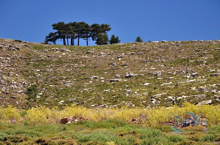 Дорога на гору начинается от перекрестка дорог на северо-западе острова, примерно посередине между Монолифосом и Критинией (главное не проехать мимо указателя). Дорога грунтовая, местами встречается асфальт. Склоны частично покрыты кустарником и травами, на вершине растительности почти нет, ветрено и прохладно. Там установлен радар, предназначенный для контроля воздушного движения, ветряки для выработки электроэнергии.