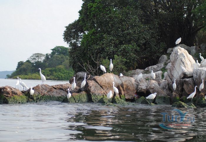 Вся эта зона – заповедная, здесь охраняют покой млекопитающих, птиц и рыб. На небольшом участке суши смогли уместиться песчаные пляжи, саванны, тропический лес, заболоченные участки. К берегам Рубондо приплывают на нерест редкие рыбы. Например, ланг, живущий в озере уже несколько миллионов лет. А вот нильский окунь, наоборот, является предметом рыболовного промысла – туристы, сумевшие добраться до этого довольно глухого места (остров лежит в стороне от популярных туристических маршрутов), получают массу удовольствия от здешней рыбалки. Некоторые особи нильского окуня могут весить 100 кг, но их вряд ли возьмешь на удочку. Любят эти острова и птицы – некоторые живут здесь постоянно, другие прилетают в период миграций. Всего же на Рубондо насчитывают до 400 видов пернатых. Редкие в других местах орлы-рыболовы чувствуют себя привольно в этом рыбном краю, говорят, что больше ни в одном месте мира они не встречаются в таком количестве. Маршруты на острове только пешеходные. Но это, скорее достоинство, чем недостаток – такого количества диких животных не увидишь из окна автомобиля. Гиппопотамы, мангусты, шимпанзе и множество других видов обезьян, слоны, жирафы, буйволы, вараны могут выйти на тропу, чтобы поприветствовать вас. Посещение Рубондо – настоящее удовольствие для тех, кто ставит общение с природой выше комфорта. Впрочем, и условия жизни для туристов там не так плохи, не слушайте тех, кто будет говорить про полное запустение острова – здесь есть и небольшой отель, и место для кемпинга. В общем, не погибнете!