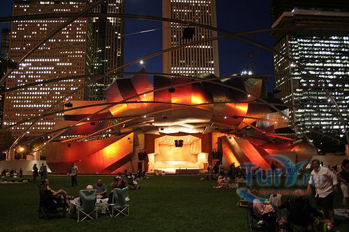 Павильон Прицкера - эстрада на 4000 мест, спроектированная всемирно известным архитектором Фрэнком Гери. Павильон состоит из изгибающихся поверхностей из нержавеющей стали, напоминающих изящный цветок или разворачивающиеся паруса корабля. Здесь, в павильоне Прицкера и на прилегающей к нему лужайке, где могут разместиться 7000 человек, проводится Музыкальный фестиваль в Грант-парке.