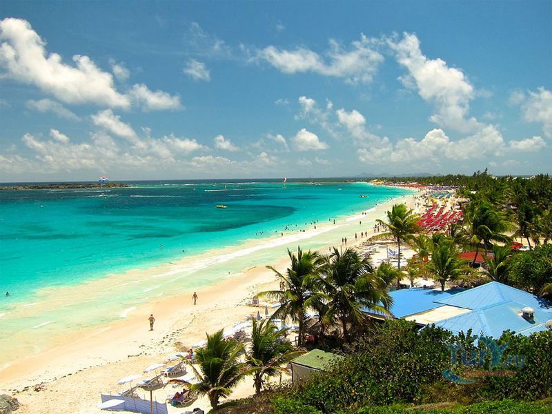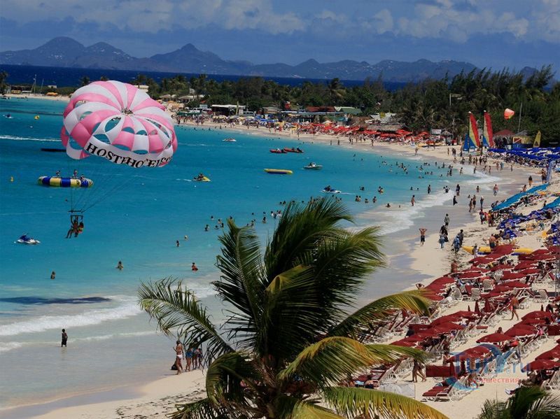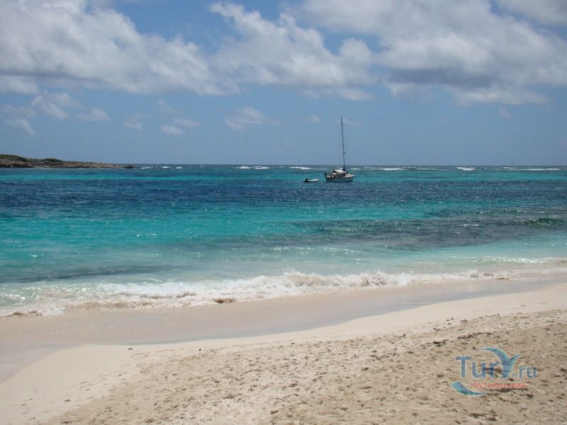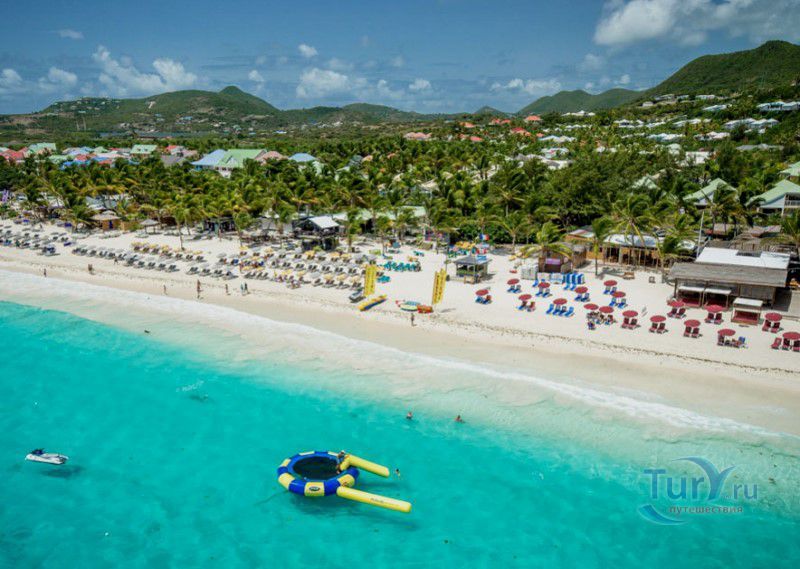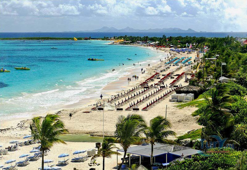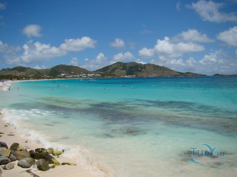 Ориент Бэй, белый песчаный пляж 2 мили длиной защищен от атлантических волн рифом, и вход в море очень пологий. Область была признана морским заповедником, так что снорклинг здесь просто невероятен. Также отличный снорклинг в соседнем Кай Верте (Зеленый Ключ), или на одном из маленьких красивых островов, усеивающих побережье, таких как Тинтамарре и Остров Пинель. Ориент Бич - наиболее развитый, самый популярный и самый занятый пляж на острове, вероятно самый известный пляж во всем Карибском море. Берег известен больше своей естественной красотой и считается самым раскрепощенным местом на острове, где купальники - не обязательны. Главная привлекательность Ориент Бэй - конечно обнаженный пляж и известный клуб Ориент - единственный нудистский курорт на острове.