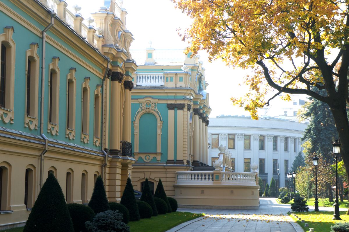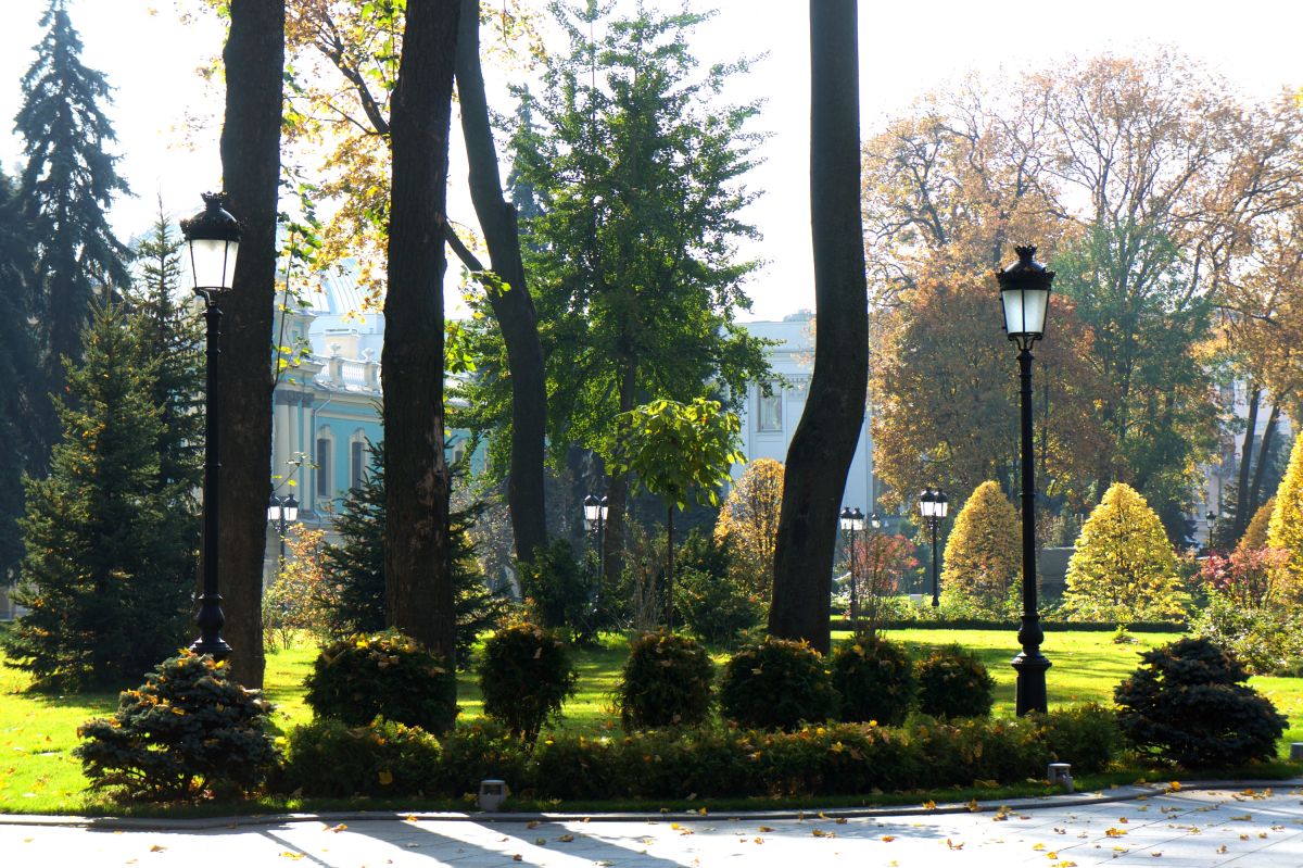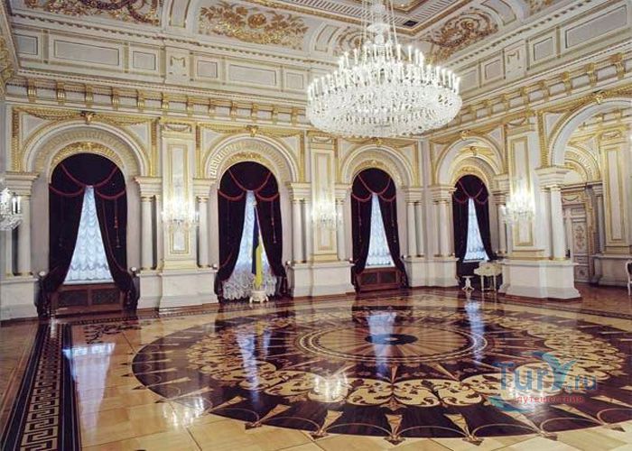 Мариинский дворец - один из самых красивых дворцов Украины. Построен на живописном, высоком правом берегу Днепра, в самом центре нынешнего Киева и считается памятником архитектуры. В 1744 году Елизавета (дочь Петра I) посетила Киев, который ее очаровал. Императрица приняла решение о сооружении дворца, в качестве киевской резиденции для императорской семьи. Место для строительства дворца она выбрала с видом на Днепр, недалеко от Печерской Лавры. Проект был разработан Бартоломео Растрелли, наиболее знаменитым архитектором России елизаветинской эпохи. Строительство дворца было завершёно в 1752 году. Однако Елизавета не успела посетить его. Первой царской особой остановившейся в Мариинском дворце была Екатерина II, посетившая Киев в 1787 году. Сегодня Мариинский дворец является Президентской резиденцией главы государства Украины, где проходят торжественные государственные события - награждение, приемы, саммиты и встречи официальных делегаций, представителей разных стран мира на высочайшем уровне. Рядом с Мариинским дворцом находится Мариинский парк основанный по проекту архитектора О.Г.Недзельського. Парк спланирован в пейзажном, так называемом, английском стиле. Уютный, тенистый, со старыми липами, клёнами и каштанами — это уникальный памятник паркового искусства. Главный вход в парк расположен напротив входа в Верховную Раду. На территории Мариинского парка находятся: Арка Дружбы народов, Кукольный театр, музей Воды, Мариинский дворец, стадион “Динамо”, памятники генералу Ватутину.