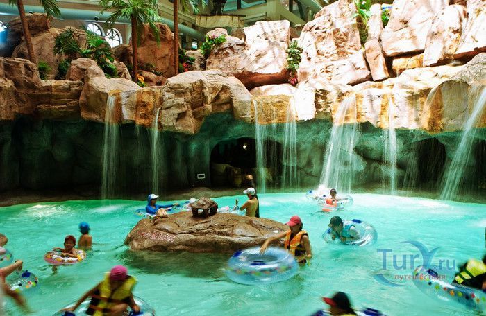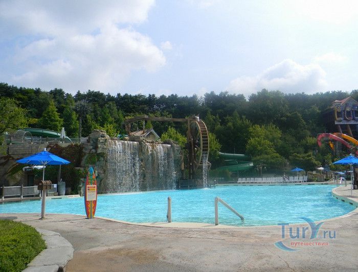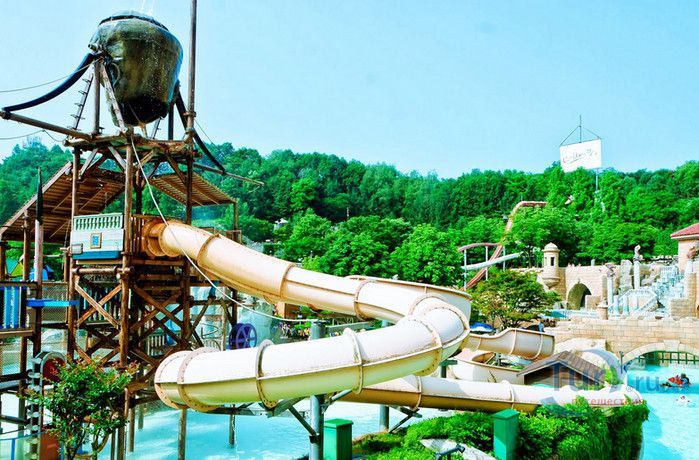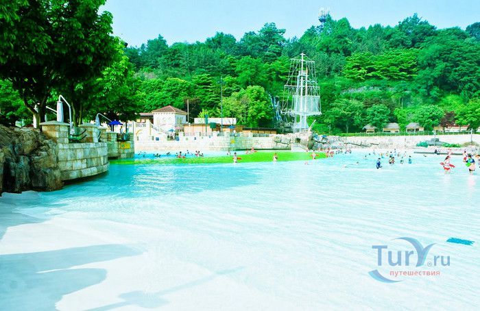 Аквапарк Карибиан Бэй - самый большой парк водных развлечений в Азии и один из крупнейших в мире, расположен в Южной Корее, в городе Йонъин, в часе езды от Сеула. Caribbean Bay был открыт в 1996 году, является частью парка развлечений Эверлэнд. Парк водных аттракционов воссоздаёт атмосферу Карибских островов, в оформлении его территории использована пиратская тематика. Аквапарк может одновременно принять 20000 посетителей, к услугам которых пять тематических зон - Водный центр, Морская волна, залив Презентация, Крепость и Дикая река. Caribbean Bay располагает крытыми бассейнами, горячими ваннами, открытыми бассейнами, водными горками и множеством аттракционов. Одной из главных достопримечательностей парка является бассейн с огромными искусственными волнами, высота которых достигает почти 2,5 метров. В бассейн без спасательного жилета не пускают, без жилета можно находиться лишь на мелководье, до жёлтой черты, нарисованной на дне бассейна. В 2011 году, в честь 15-летия со дня открытия аквапарка, был введён в эксплуатацию новый аттракцион, который сразу полюбился любителям экстрима - водные горки Aqua Loop высотой 18 метров. Отважные посетители поднимаются на самый верх и попадают в кабинку, в которой на счёт 3-2-1 из под ног убирается пол. Почти отвесный полёт по желобу вниз, полный оборот на 360 градусов, вылет из желоба в бассейн, и всё это на скорости 90 километров в час. Визг и крики участников этого самого "адреналинового" аттракциона слышны издалека, горка находится в тематической зоне Дикая река. Зону Крепость посещают любители виндсёрфинга. Залив Презентация предлагает любителям острых ощущений несколько экстремальных аттракционов, в числе которых водная горка Mega Storm, открытая в 2015 году, водный бобслей и горка Tube Ride. Бассейны и аттракционы аквапарка рассчитаны на любой вкус и возраст, есть огромные и маленькие горки, с открытыми и закрытыми желобами, бассейны с искусственными волнами и водопадом, а также детская зона с мелкими бассейнами, мини горками, водными качелями и фонтанчиками. Водный центр - крытая зона аквапарка Caribbean Bay. Здесь расположены несколько бассейнов, водные горки, а также салоны красоты, сауна и горячие ванны с целебной водой. На территории аквапарка расположены рестораны и магазины, в которых можно приобрести плавательные принадлежности.