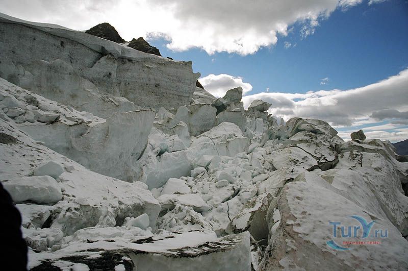 Тасманский ледник, спускающийся с горы Кука, - воистину впечатляющее зрелище. Ледник образует узкий ледяной язык протяженностью 27 км, шириной местами до 3 км; общая площадь его 52 кв.км. В некоторых частях он достигает толщины 610 м. и является крупнейшим ледником Новой Зеландии. К тому же это чрезвычайно активный ледник. Ежедневно он продвигается на 50-65 см. Несмотря на такую высокую скорость, ледник все-таки постепенно отступает. Поскольку он заканчивается на высоте всего лишь 762 м. над уровнем моря, где температуры относительно высоки, то скорость таяния снега и испарения воды превышает скорость его движения.