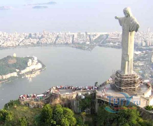 "Бог сотворил мир за шесть дней. А на седьмой он создал Рио-де-Жанейро". Так шутят бразильцы, имея в виду поистине сказочное местоположение и красоту своего города, который до 1960 года, когда был построен город Бразилия, являлся и столицей страны. У этого города и впрямь есть все, чтобы стать истинным земным раем. Он окружен полукольцом гор, вырастающих из лазурных глубин залива, а со стороны моря словно оторочен белой кромкой песчаных пляжей в темной зелени пальм. Символом города по праву считается статуя Спасителя (Cristo Redentor). Эту статую в 2007 году назвали новым чудом света. Она стоит на вершине холма Корковаду (Corcovado означает "горб" и довольно метко характеризует его форму) на высоте 704 метра. Это одна из самых знаменитых скульптур мира. Высота самой статуи - 30 метров, не считая семиметрового постамента.