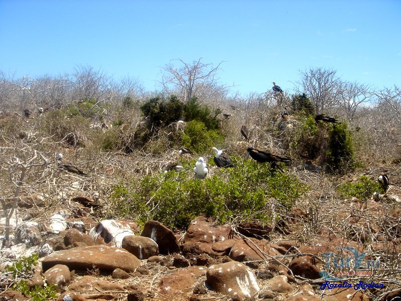 Остров Сеймур является своеобразным птичим раем - местом, которое облюбовали колонии птиц, среди которых большая популяция голубоногих олуш и галапагосских чаек. Здесь же находится одна из самых больших колоний фрегатов - этих привлекательных птиц с яркими красными мешками, раздуваемых до невероятно больших размеров.
