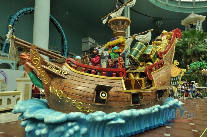Развлекательный Комплекс Лотте Ворлд расположен в Южной Корее, в центре Сеула. Комплекс был открыт в 1989 году и с тех пор его ежегодно посещают более 6 миллионов человек. Лотте Ворлд делится на две части - крытый тематический парк Adventure и открытый парк развлечений Magic Island. Adventure является одним из крупнейших в мире крытых тематических парков, в нём расположены множество аттракционов, ледовый каток, этнографический музей, кинотеатр, роскошный отель, торговый и спортивный центры, магазины, рестораны и кафе. Здесь беспрерывно, сменяя друг друга, проводятся различные фестивали, карнавалы, лазерные шоу и театральные представления. Желающие могут прокатиться на воздушном шаре под самым куполом, совершить мёртвую петлю на американских горках, испытать свои нервы в комнате ужасов с оживающими мертвецами и горой скелетов, промчаться на джипе по доисторическим джунглям, отправиться в путешествие вместе с Синдбадом и даже побывать в плену у пиратов. Возле каждого экстремального аттракциона дежурят фотографы, любезно предлагающие участнику "полёта" купить на память его фото с перекошенным от страха лицом. Карусели, аттракционы, яркие огни и музыка - всё это движется, играет, сияет и мигает под аккомпанемент восторженных криков и смеха детей и взрослых. На нижнем этаже расположен ледовый каток, здесь же находятся служба проката коньков, раздевалки, спортивный магазин, бар и ресторан. Каток открыт круглый год и пользуется огромной популярностью у детей и влюблённых парочек. На третьем этаже расположен этнографический музей, экспозиция которого посвящена истории и культуре Кореи. Magic Island (Волшебный остров) - открытая часть комплекса, попасть сюда можно прямо из крытой зоны, перейдя по мосту. Волшебный остров расположен посреди озера, на нём находится сказочный замок и установлены высотные аттракционы, от катания на которых захватывает дух. Самые популярные из них - Чаиро-Дроп и Чаиро-Свинг, первый предлагает "упасть" с 70-метровой высоты, второй - попасть в центр воронки торнадо. Чтобы не искать после посещения Чаиро-Свинг свою обувь по всему парку, лучше перед катанием её снять. Посетители парка, устав от развлечений, могут прогуляться вокруг живописного озера, перекусить в одном из многочисленных кафе и обязательно попробовать мороженное, которым славится Лотте Ворлд.
