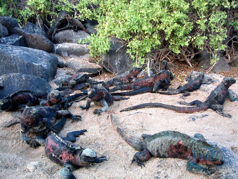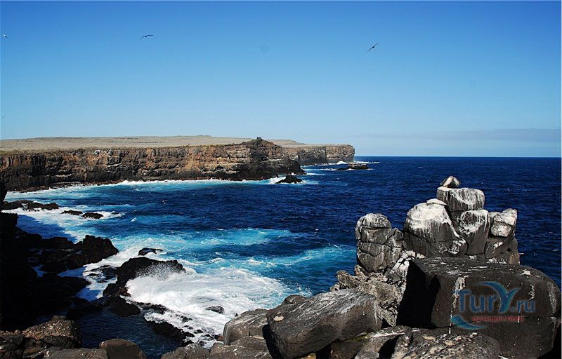Мыс Пунта Шуарес (Punta Suarez) - это потрясающее место с отвесными утесами, черными лавовыми берегами и вулканическими образованиями, изрезанными ветром и морем. Тонны морской воды, разгоняясь, врываются в отверстия скал, и с шумом и свистом вылетают оттуда, образуя столб водяной пыли высотой до 20 метров. Морские фонтаны Пунта Шуарес - завораживающее зрелище, на которое можно любоваться часами.