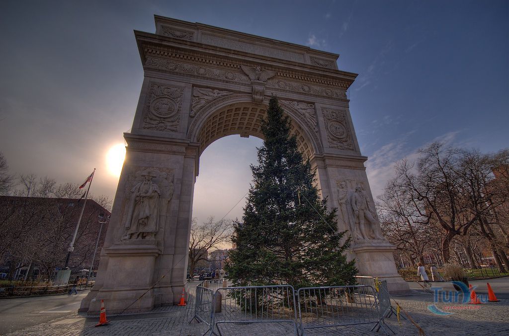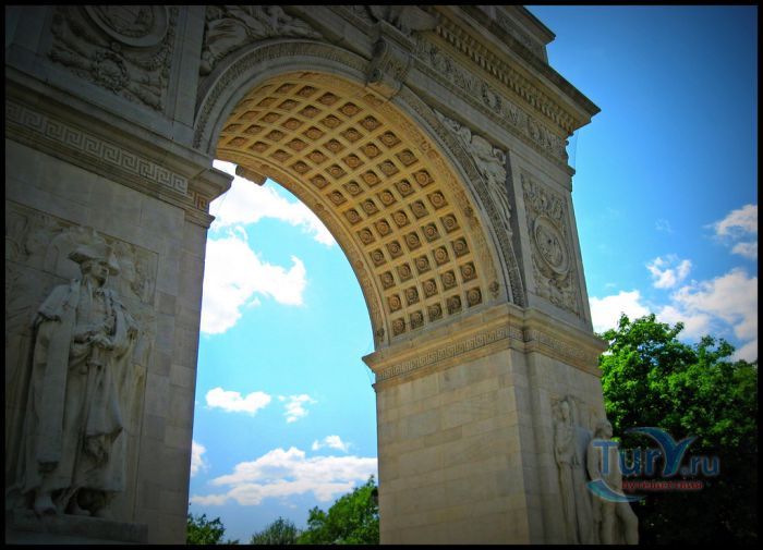Арка Вашингтона находится в начале Пятой Авеню. Она была воздвигнута к столетию инаугурации Джорджа Вашингтона в 1889 году. Считается, что именно здесь первый президент сша въехал в свою будущую столицу. Со стороны Пятой авеню арку украшают сразу две статуи Вашингтона: в мундире, в память о его военных доблестях, и в партикулярном камзоле, в память о его гражданских добродетелях.