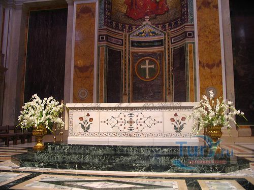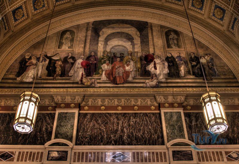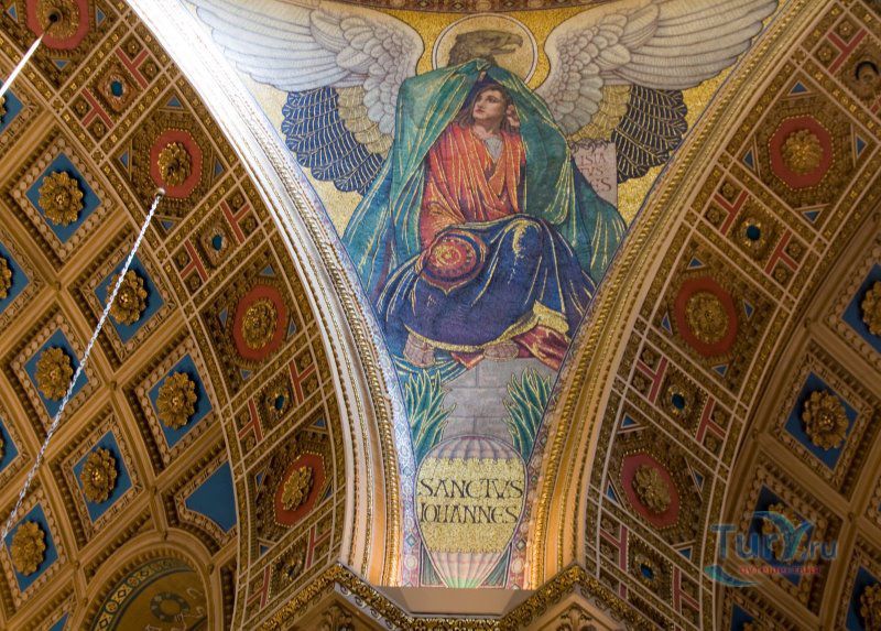 Здешняя архитектура соединяет в себе черты романского и византийского стиля. Зал вмещает около двух тысяч человек. Интерьер богато декорирован мрамором и полудрагоценными камнями. Главное украшение - огромная мозаика Святого Апостола Матвея, созданная Эдвином Хоуландом Блэшфилдом.