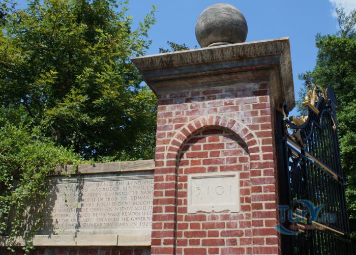 Четыре гектара садов были спроектированы по садово-парковой архитектуре Беатрис Фарранд. Они тянутся поперек отлого холма вниз к заросшей деревьями долине. Из одного сада в другой вас ведут бесконечные кирпичные дорожки, которые обсажены по бокам кустами и вечнозелеными деревьями.