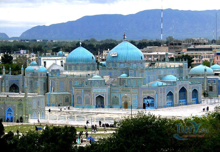 В Мазари-Шарифе находится уникальный храмовый комплекс Розии Шариф (Голубая Мечеть). Как гласят местные легенды — это гробница Хазрат Али, четвёртого праведного халифа ислама, особо почитаемого шиитами. Настоящая могила халифа Али находится в городе Неджефе в Ираке, однако дополнительные мазары как места поклонений — явление частое в афганской и таджикской религиозной практике. По этой причине Мазари-Шариф служит местом поклонения. Гробница Хазрат Али —религиозный, деловой и географический центр города и одновременно его единственная архитектурная древность. Выглядит как сгусток чистого неба, который спустился на землю и расцвёл разнообразнейшими узорами - цветочными, каллиграфическими и геометрическими, в виде солнцеворотов и звёзд. Вокруг всего комплекса - две концентрические ограды. Между ними разгуливают белые голуби, которых служители и посетители мечети подкармливают пшеном и всячески холят и лелеют; есть даже специальные голубиные бассейны и голубиный домик в виде минарета. Помимо собственно гробницы (закрытой для немусульман) есть мечети, медресе, гостиница для паломников и некий музей истории. Площадь выложена плитами из серого мрамора. Гулять, снимать и общаться здесь можно беспрепятственно и бесплатно. Ночью купола мечетей подсвечиваются неоновыми гирляндами и ярко-красной арабской надписью "Али".