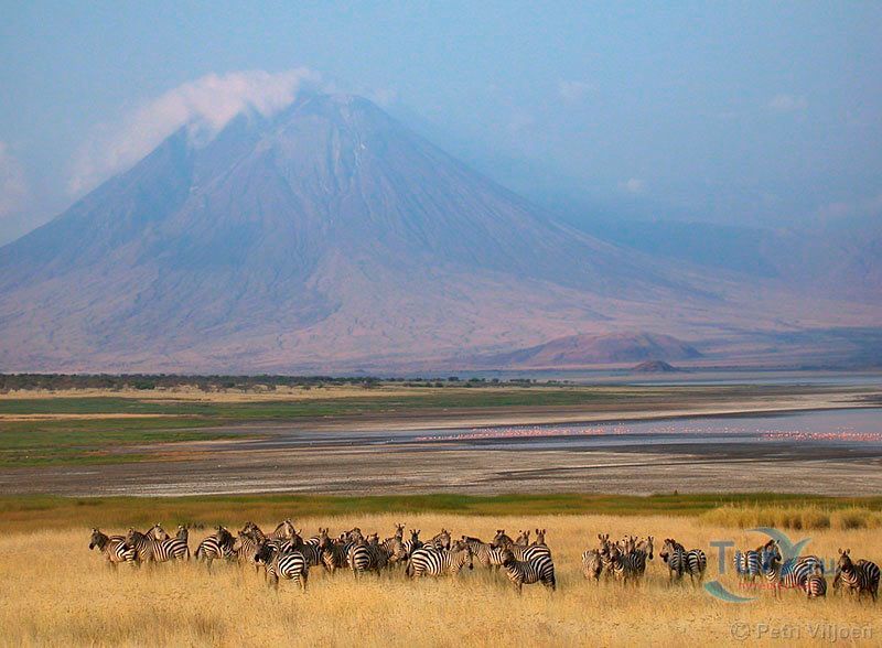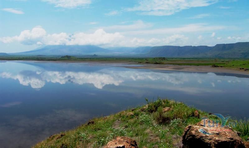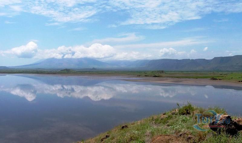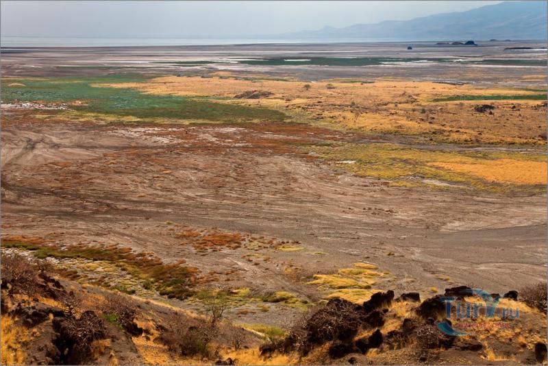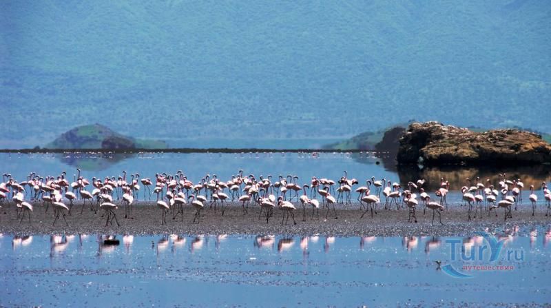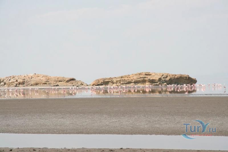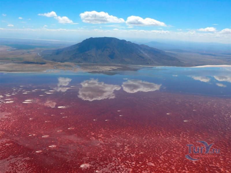 Озеро Натрон – удивительнейший водоем, входящий в число уникальных соленых озер планеты. Расположилось озеро в Танзании (Африка) на территории заповедной зоны площадью 700 кв. км в районе Большого Рифтового разлома - одного из самых активных вулканических зон планеты, постоянно находящаяся в движении. Приютившееся между огромными вулканическими холмами и глубокими кратерами озеро находится в самой нижней точке Рифтовой долины – в 600 метрах над уровнем моря и является самым едким водоёмом в мире. Натрон в переводе означает «красное», что и понятно, стоит лишь взглянуть на него. Озеро обладает тёмно-красным цветом, характерным для тех озёр, где наблюдается очень высокая интенсивность испарения. При испарении воды во время сезона засухи, концентрация соли в воде возрастет до такой степени, что в ней начинают процветать микроорганизмы, любящие соль. Натрон имеет характерный для соленых водоемов красный цвет из-за цианобактерий, которые обладают способностью растений поглощать свет с помощью фотосинтеза. Накапливая фотоны, бактерии меняют свою пигментацию в сторону красных оттенков, что и придает озеру насыщенный красный цвет. Лишь на мелководье, где микроорганизмов значительно меньше, вода имеет оранжевый оттенок, а не красный. Это озеро очень мелководно. Его глубина не превышает трёх метров, а ширина варьирует в зависимости от уровня воды, который меняется из-за сильного испарения, в результате которого в озере остаются концентрации солей и других полезных ископаемых, в частности, карбоната натрия (соды). Температура воды может достигать 50 градусов, а уровень щелочности от 9 до 10,5 рН, практически как у аммиака! Когда фотограф Ник Брандт впервые посетил озеро Натрон, он был в шоке от вида жутких окаменевших статуй животных, распространенных по всей территории озера. Позже он выяснил, что это настоящие животные, которые окаменели в результате сильной щелочной концентрации в воде. Щелочная концентрация в воде образовалась естественным путем благодаря вулканическому пеплу. Этот же элемент египтяне использовали для лучшей бальзамировки своих мумий. Ни одно животное не может противостоять этой едкой среде. Долгий контакт с этой агрессивной средой заканчивается, как правило, летальным исходом. Как только птица или летучая мышь окунается в воду озера, концентрированные минералы начинают превращать их плоть в камень. Данная среда поддалась лишь нескольким видам водорослей и рыб, которые обитают у берегов озера. В Восточной Африке это озеро является единственным регулярным ареалом размножения для 2 500 000 малых фламинго, чей статус «близки к исчезновению» является результатом их зависимости от одного единственного места размножения. По мере увеличения солёности увеличивается и число цианобактерий, и озеро может поддерживать больше гнёзд. Эти фламинго, которые живут одной большой группой в Восточной Африке, собираются у солёных озер в этом регионе, где они питаются спирулиной - сине-зелёными водорослями, вырабатывающими пигмент красного цвета. Озеро Натрон является безопасным местом размножения потому, что его едкая среда является барьером для хищников, пытающихся добраться до гнёзд фламинго, построенных на островках, образующихся в озере сезонно из-за испарения.