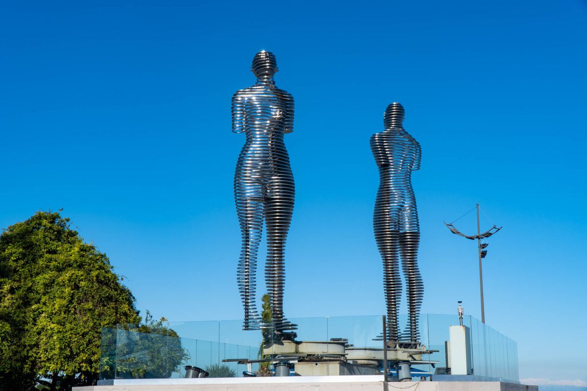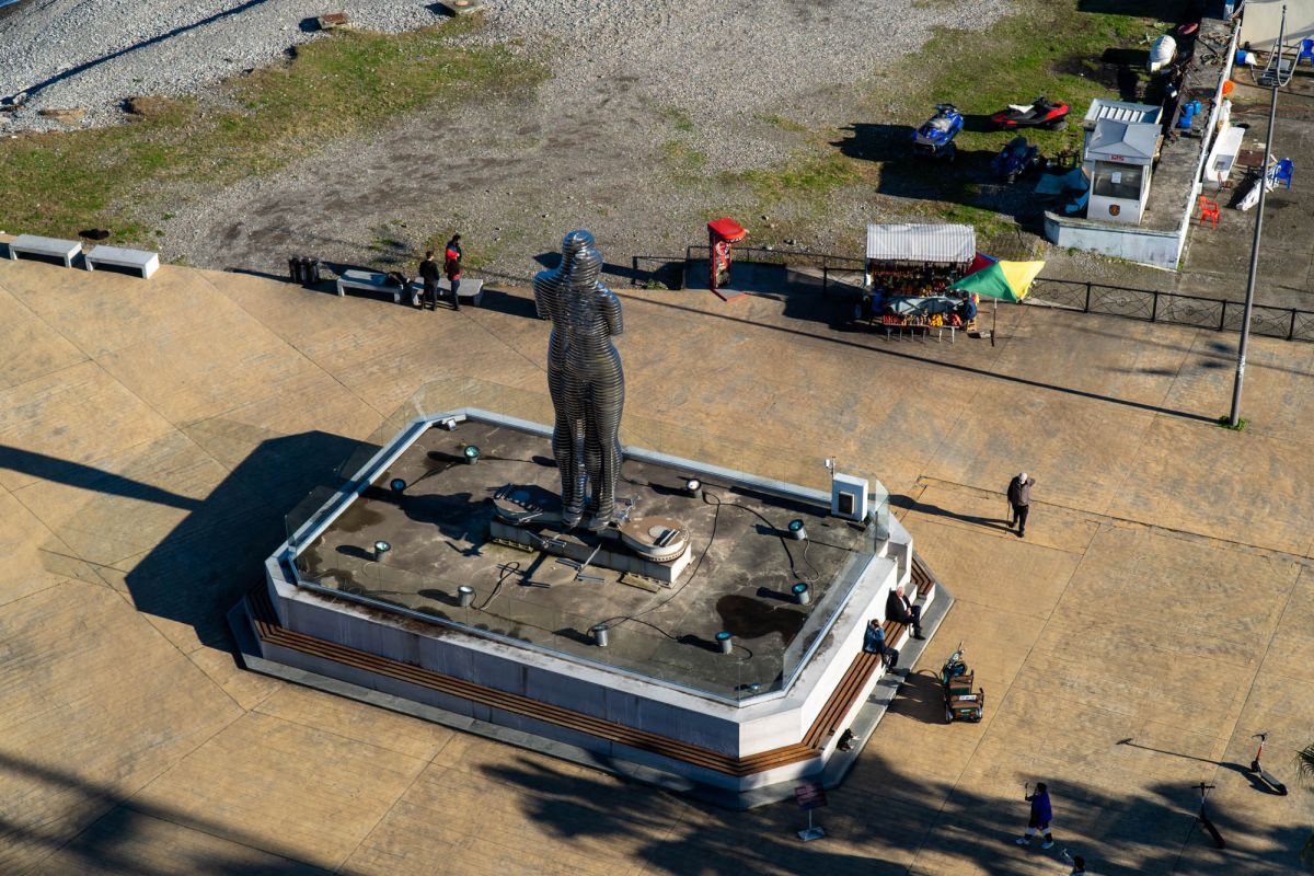 Батуми, Грузия — статуя любви, которая рискует стать самой оригинальной скульптурной композицией в мире. Движущаяся скульптура любви высотой семь метров, двигается с интервалом 8-10 минут. Скульптура представляет из себя фигуры мужчины и женщины, сделанные из стали, которые двигаясь друг к другу, становятся одним целым.