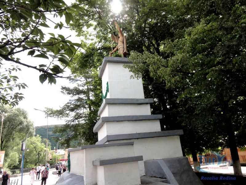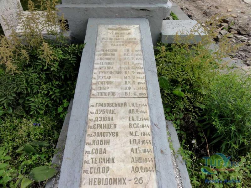 В центре закарпатского города Рахов рядом с мостом, соединяющим правый и левый берег реки Тиса, воздвигнут мемориал памяти героям Великой Отечественной войны 1941-1945 годов, отдавших свои жизни за наше мирное существование. В тени зеленых деревьев стоит воин защитник, освобождавший народ от немецко-фашистских захватчиков, а рядом мать прижимая к себе сына всем видом показывает, как дороги дети и как они нуждаются в защите. Мемориал, как память о страшном прошлом, взывает к настоящему и будущему поколениям: "Берегите землю, храня на ней вечный мир".