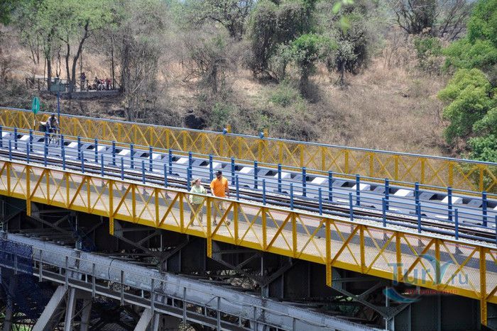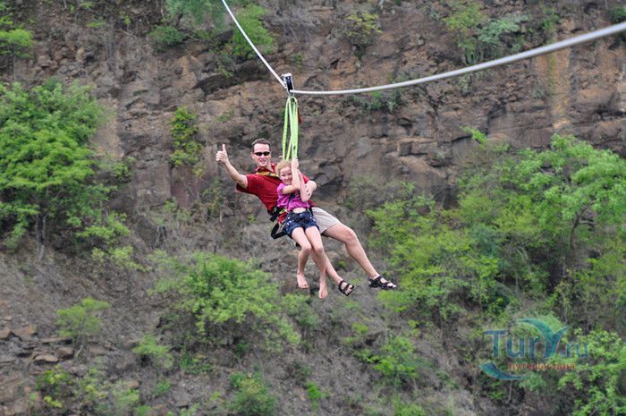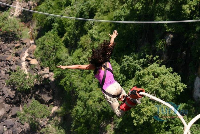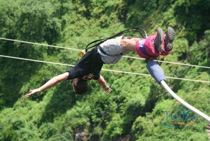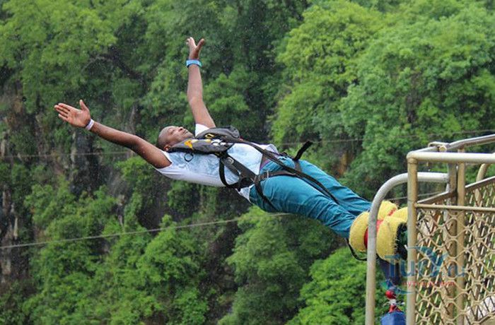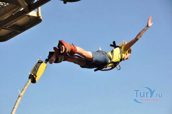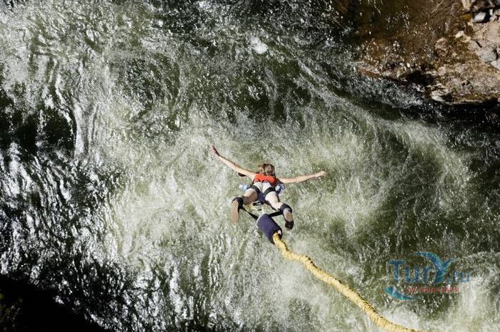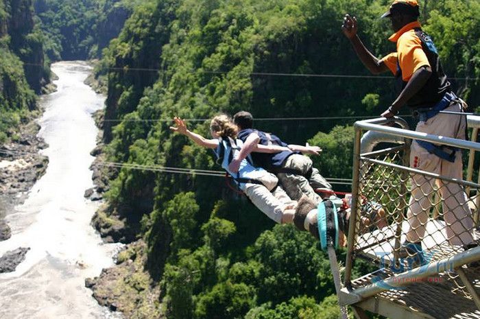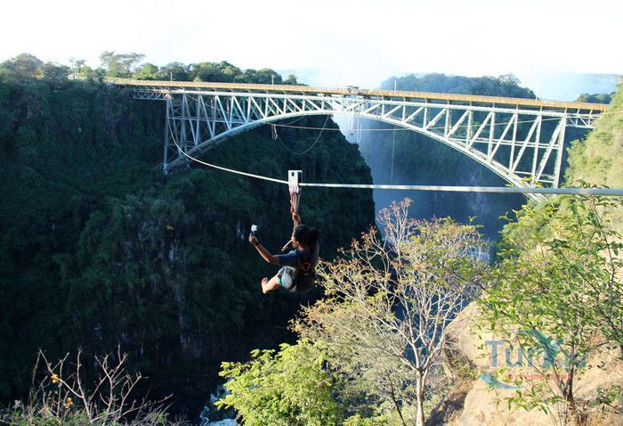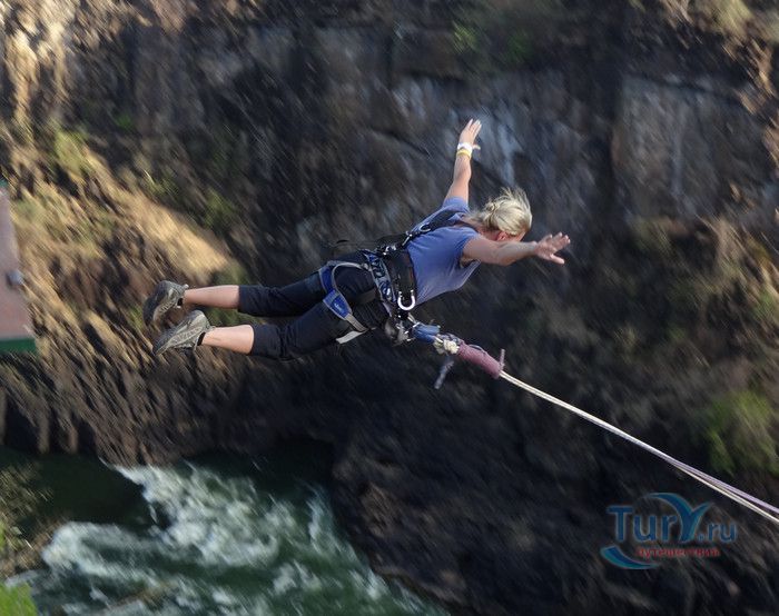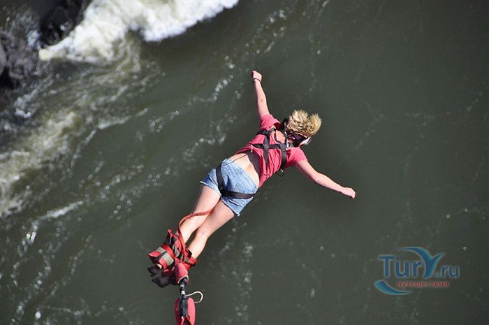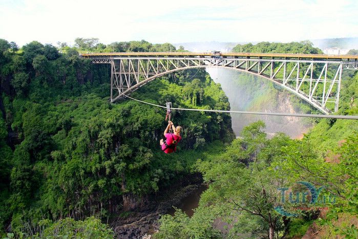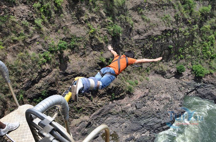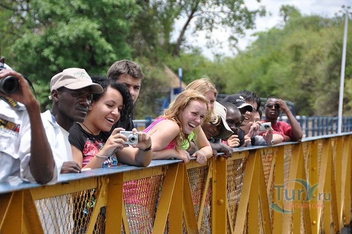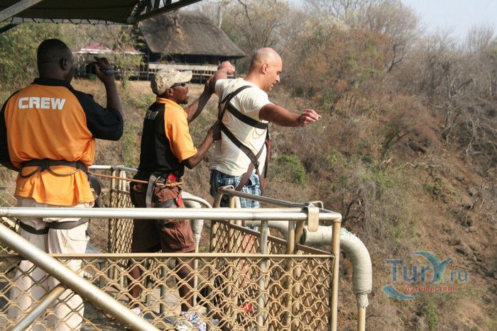 Железнодорожный мост у водопада Виктория на реке Замбези, соединяющий Замбию и Зимбабве, расположен чуть ниже водопада Виктория. Мост сам по себе является популярной достопримечательностью, которую посещают тысячи туристов, с него открывается великолепный вид на водопад Виктория и реку Замбези. Кроме того, мост привлекает любителей острых ощущений возможностью совершить головокружительный прыжок банджи с высоты 111 метров, зависнув буквально в нескольких метрах от порогов на реке Замбези. Интересно, что банджи-джампинг зародился именно на просторах Африки - у некоторых африканских племён существует старинный ритуал, когда мужчины взбираются на 30-метровую вышку, обвязывают ноги лианами и прыгают вниз. Особенность этого прыжка в том, что голова должна коснуться земли, а смысл ритуала - уберечь племя от неурожая. После того, как новозеландец Эй Джей Хаккетт впервые прыгнул вниз головой с привязанным к ногам эластичным канатом, банджи-джампинг стал массовым экстремальным увлечением во всем мире. Многие любители пощекотать нервы утверждают, что прыжок с моста у водопада Виктория - лучший прыжок банджи в мире. Кроме того, есть возможность прокатиться над ущельем по 135-метровому канату, натянутому на высоте 75 метров, или испытать "качели моста", спрыгнув с разбега прямо в пропасть и на протяжении 50 метров пребывать в свободном полёте. Естественно, прыжок совершается с надежно закреплённым за спиной эластичным канатом, прыгать можно как одному, так и в тандеме. По желанию, можно заказать съёмку своего полёта над бездной.