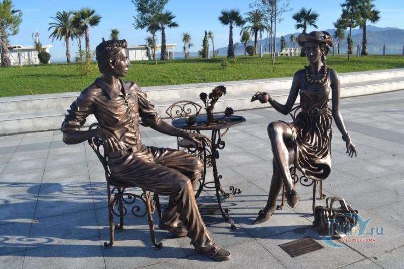 Скульптура изображает сидящих за столом мужчину и женщину, которые пьют кофе. Идея этого сюжета по задумке автора выражает традицию приготовления кофе по-батумски. У стола стоит третий свободный стул для желающих сфотографироваться. Скульптура быстро приобрела популярность и стала любимым местом для туристов.