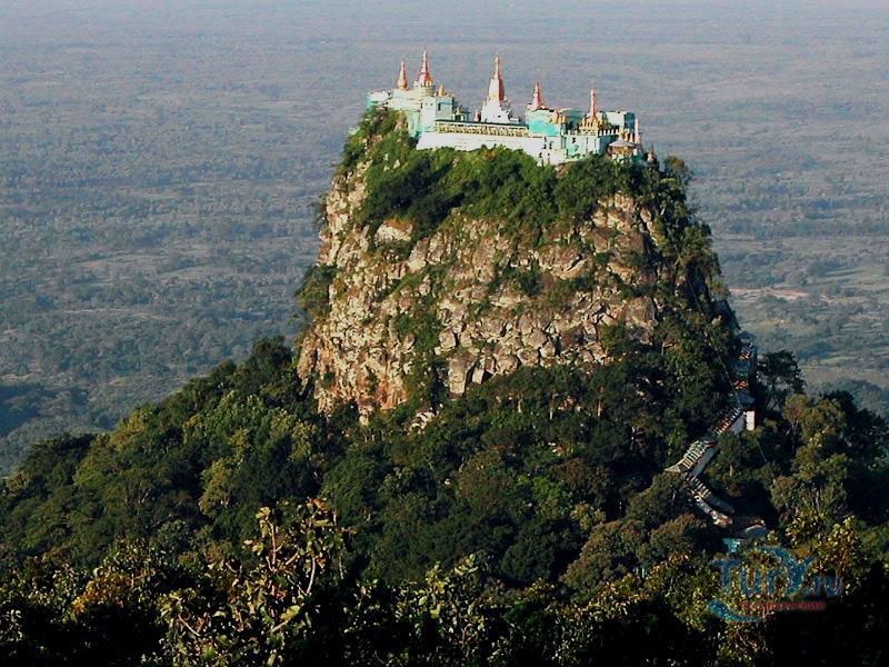 Гора Попа является одной из главных достопримечательностей Мьянмы. Загадочная гора-вулкан Попа с потухшим кратером на вершине считается самым известным святилищем духов (натов) в Мьянме, которым с древности поклонялись бирманские племена. Каждый год на протяжении 700 лет гору посещает большое количество паломников во время полнолуния Надо в ноябре-декабре и во время праздника полнолуния Найон в мае-июне. Подняться на вершину горы можно по очень крутой лестнице, которую построил буддийский монах У Кханди. При хорошей погоде гору видно за 60 км. Вид с Горы Попа просто потрясающий - с вершины горы виден старинный город Баган, а с противоположной стороны виден каньон глубиной 914 метров. С юго-западной стороны горы расположена скала Таунг-Калат высотой более 700 метров с буддийским монастырём на самой вершине. Существует поверье, что нельзя надевать одежду красного или чёрного цвета, когда посещаете Гору Попа, также нельзя брать с собой мясо, чтобы не раздражать духов-натов. Гору Попа также называют мьянмарским олимпом из-за большой мифологической значимости места для культуры Бирмы. С горой и монастырём на её вершине связано большое количество легенд, начиная от сотворения мира и до рождения царей и цариц. Гора Попа олицетворяет смесь буддизма и традиционных мьянмарских представлений.