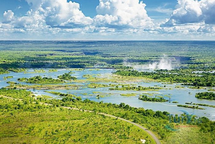 Национальный Парк Моси-оа-Тунья, объект Всемирного наследия ЮНЕСКО, находится в Замбии, на границе с Зимбабве и "делит" с этим государством водопад Виктория, расположенный на реке Замбези. Моси-оа-Тунья на языке коренных жителей означает "Гремящий Дым", так аборигены называют водопад Виктория, названный "открывшим" его в 1855 году шотландским путешественником Дэвидом Ливингстоном в честь королевы Виктории. Национальный парк Моси-оа-Тунья основан в 1972 году, занимает территорию площадью 66 квадратных километров, на которой расположены влажные тропические леса, саванны, пойменные луга и главная достопримечательность - водопад Виктория. Водяная пыль, постоянно висящая над водопадом и его окрестностями, создала среди сухих саванн влажный вечнозелёный оазис, в котором произрастают красное и эбеновые деревья, бамбук, древовидные папоротники, финиковые пальмы и лианы. На территории парка обитают антилопы, зебры, жирафы, бородавочники, бабуины, множество птиц и мелких животных. Болота вдоль берегов Замбези облюбовали крокодилы и бегемоты. Слоны свободно пересекают реку на своём пути из Зимбабве в Замбию и обратно, этих животных часто можно встретить в Моси-оа-Тунья. Из Южной Африки, в рамках программы восстановления популяции носорогов, были привезены два белых носорога, один из которых в 2007 году был убит браконьерами. Тем не менее, на июнь 2009 года в парке Моси-оа-Тунья обитали уже пять белых носорогов. Практически исчезнувшие в Замбии чёрные носороги из-за бесконтрольной охоты на них ради добычи ценного рога, были также замечены в парке Моси-оа-Тунья. Посетители парка могут совершить круиз по реке Замбези, побывать у водопада Виктория, заняться рафтингом, отправиться в сафари на автомобиле или совершить пеший поход по парку.