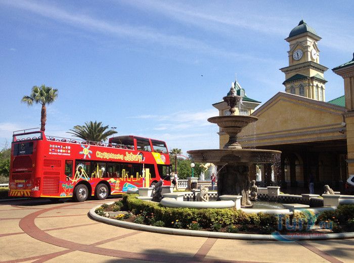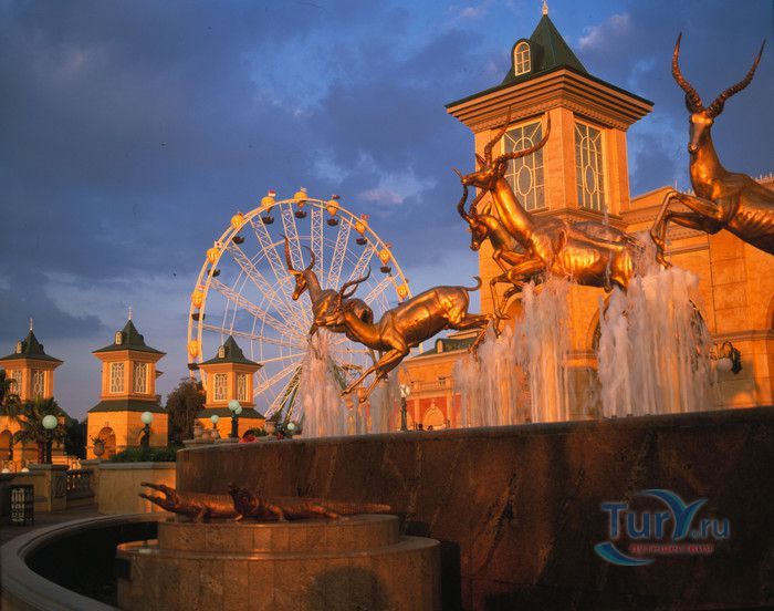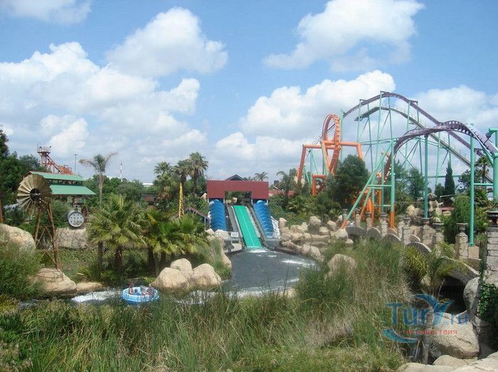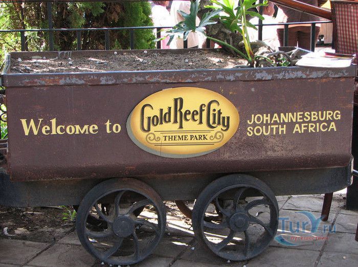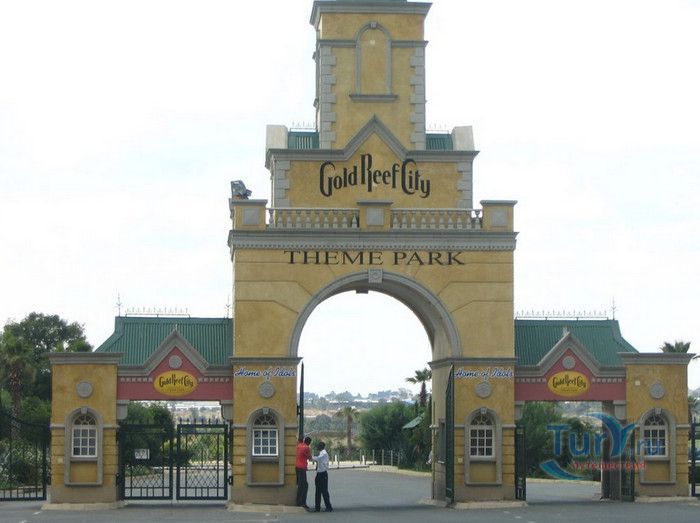 Парк Развлечений Голд Риф Сити расположен в Южно-Африканской Республике, в 8 км от центра Йоханнесбурга, построен в 1987 году на месте старого золотоносного рудника Crown Mines, занимает территорию площадью 12 гектаров. В парке воссоздана атмосфера времён "золотой лихорадки" - улицы с домами и тавернами конца XIX века, сотрудники в соответствующих тому времени костюмах. Парк начинался с экскурсий в старую шахту, постепенно его инфраструктура значительно расширилась, появились современные аттракционы, рестораны, казино, был создан музей, экспозиция которого посвящена добыче золотой руды и технологии отливки золотых монет и слитков. Парк Голд Риф Сити предлагает множество развлечений на любой вкус и возраст. Любителей острых ощущений ждут горка Анаконда (одна из двух существующих в мире "перевёрнутых" горок), Башня ужаса, позволяющая пережить ощущения падения в шахту с 50-метровой высоты на скорости 100 километров в час, американские горки Джози Экспресс, которые на головокружительной скорости пронесут над вершинами деревьев, предлагая отличный вид на Йоханнесбург. Аттракцион Золотой цикл на скорости 85 километров в час всего за 3 секунды поднимет на высоту 40 метров, и с такой же скоростью "обрушит" вниз. Кроме того, посетители могут совершить захватывающее путешествие по реке с опасными порогами, водопадами и пещерами (аттракцион Бешеные речные пороги), прокатиться на Поезде-беглеце и почувствовать себя космонавтом на карусели НЛО, вращающейся со скоростью 50 километров в час. Для малышей в парке оборудована детская зона с каруселями, качелями и мини зоопарком. На территории парка работают рестораны, фаст-фуды и закусочные, есть театр, 4D кинотеатр, отели и магазины. Любители азартных игр могут посетить казино и игровые автоматы. Сегодня парк развлечений Голд Риф Сити является крупнейшим на континенте, ежегодно его посещают тысячи туристов со всего мира.
