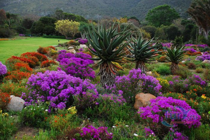Национальный Ботанический Сад Кирстенбош - один из самых больших и красивых в мире ботанических садов, расположен в Южно-Африканской Республике, на восточном склоне Столовой горы, в 13 км от центра Кейптауна. Ботанический сад Кирстенбош основан в 1913 году с целью сохранения и демонстрации богатства и разнообразия эндемичной флоры Южной Африки. Инициатором его создания и первым директором был профессор ботаники Гарольд Пирсон. На этом посту он пробыл всего 3 года, внезапная смерть от пневмонии в 1916 году прервала его грандиозные планы, но идеи учёного не были забыты. Гарольд Пирсон похоронен в своём любимом Кирстенбоше, на могильной плите высечены слова: "Если вы ищете его памятник, оглянитесь вокруг себя". Ботанический сад занимает территорию площадью 528 гектаров, на которой представлены более 7000 растений, в том числе редкие и исчезающие виды. На открытом пространстве сада произрастают преимущественно представители флоры Капского региона, в том числе большая коллекция протей (цветок протеи является национальным символом ЮАР), в оранжерее собраны растения из различных районов Африки. Из ботанического сада по специально оборудованным тропам можно подняться на вершину Столовой горы. Один из маршрутов проходит через ущелье Скелета, этот путь известен как "Тропа Смэтса", названный в честь бывшего премьер-министра ЮАР Яна Смэтса, очень любившего здесь гулять. К 100-летнему юбилею Ботанического сада Кирстенбош, на высоте 12 метров над землёй, была построена подвесная аллея, длина которой составляет 130 метров. Аллея представляет собой своеобразную смотровую площадку, с которой открывается великолепный вид на ботанический сад и Столовую гору. Конструкция этой аллеи по форме напоминает огромную змею, за что посетители нарекли её Boomslang (Древесная змея). Гуляя по саду, посетители также могут увидеть скульптуры, установленные на газонах и аллеях, посетить художественные выставки, которые постоянно проходят в Кирстенбоше, стать зрителями одного из арт-шоу. В Ботаническом саду есть рестораны, сувенирный и книжный магазины, в садовом центре можно приобрести саженцы и семена местных растений. В 2004 году Кирстенбош (в составе Капской области) был внесен в список Всемирного наследия ЮНЕСКО, став первым в мире ботаническим садом в этом списке.