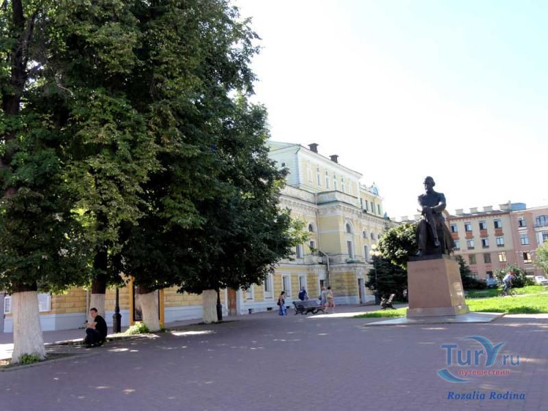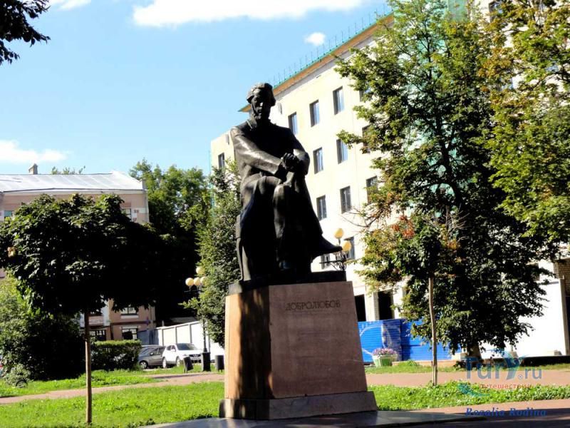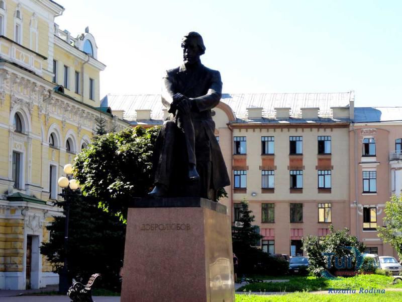 Памятник Н.А.Добролюбову расположен в городе Нижнем Новгороде, в сквере на площади Театральной, с правой стороны от здания академического театра драмы. Здесь поблизости находился дом, в котором в 1836 году родился Добролюбов Н. А. Русский литературный критик, публицист, революционный демократ Добролюбов был также поэтом-сатириком, остроумным пародистом, душой выходившего при "Современнике" литературного приложения "Свисток". Короткая жизнь Добролюбова сопровождалась большой литературной активностью. Он много и легко писал. Некоторые его произведения, направленные против Николая I, остались не напечатанными при жизни.