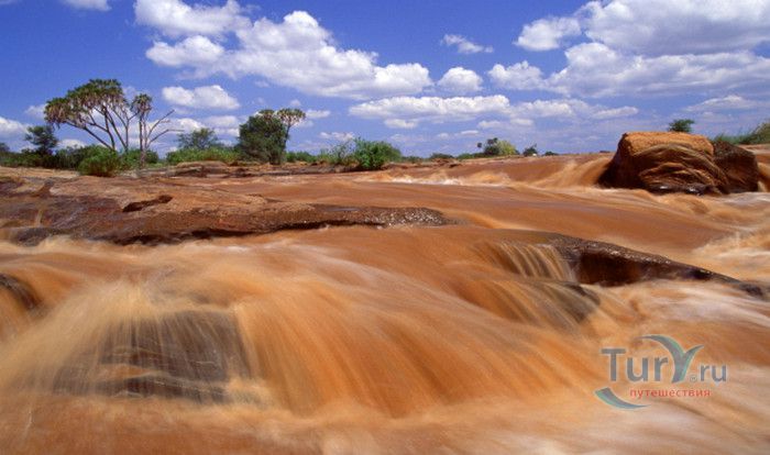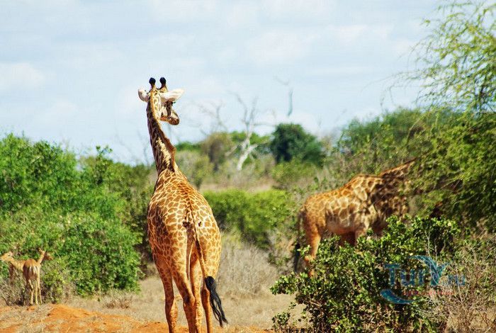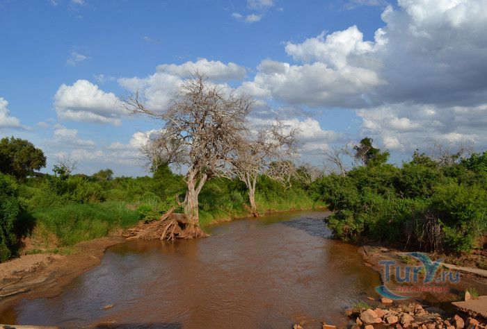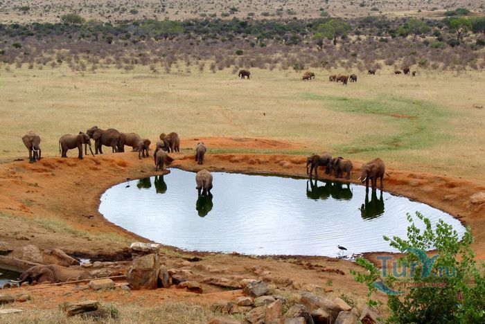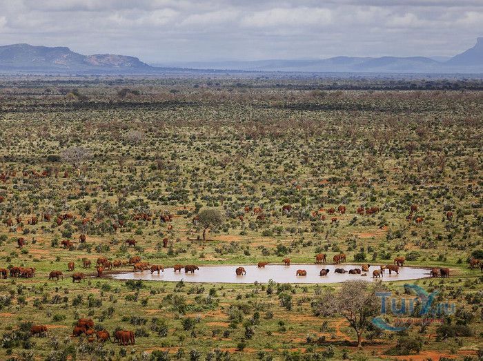Национальный Парк Восточный Тсаво расположен на юго-востоке Кении, от Национального парка Западный Тсаво его отделяет автомагистраль Найроби - Момбаса и железная дорога. Восточный Тсаво - один из самых больших Национальных парков Кении, его площадь 13747 квадратных километров. Парк создан в апреле 1948 года с целью сохранения уникальных экосистем и обитающих в них диких животных. На территории парка находится плато Ятта - самый длинный в мире застывший лавовый поток длиной 290 км, образованный в результате извержения вулкана Ол Доинио Сабук. Еще одна достопримечательность - скалистый утёс Муданда, у подножия которого расположен водоём, служащий во время сухого сезона источником воды для слонов и других диких животных. На краю плато Ятта находится водопад Люгард (каскад порогов на границе водораздела рек Тсаво и Галана). Быстрые потоки реки Тсаво в этом месте погружаются в узкое ущелье и пробивают себе дорогу через расщелины в скалистой породе. Шум воды, преодолевающей пороги, слышен издалека. Быстрый поток нередко увлекает за собой животных, пришедших на водопой, внизу свою жертву уже поджидают полчища крокодилов. По территории парка несут свои воды реки Ати, Галана и Вои. В 1952 году на реке Вои была построена плотина Аруба Дам и создано водохранилище, которое служит источником воды для животных и птиц. Ландшафт парка представлен скалистыми участками, травянистыми саваннами с зарослями акации, сухими равнинами и болотистыми участками вдоль берегов рек. В Восточном Тсаво обитают львы, гепарды, леопарды, гиены, земляной волк, шакалы, слоны (популяция насчитывает около 4000 животных), чёрные носороги, буйволы, антилопы, зебры, жирафы, мангусты, бабуины, крокодилы, бегемоты и другие животные. Более 500 видов птиц зарегистрированы на территории парка, в числе которых - страусы, пустельги, канюки, пальмовый гриф, боевой орёл, орлан-сип, скворцы, птица-ткач, птица-секретарь, зимородки, цапли. Национальный парк Восточный Тсаво пользуется большой популярностью у любителей природы и эко-туризма. Для посетителей оборудованы кемпинги и палаточные лагеря, разработаны увлекательные маршруты, есть возможность отправиться в сафари на автомобиле, в пешие походы, фото-туры, побывать на плато Ятта и у водопада Люгард.