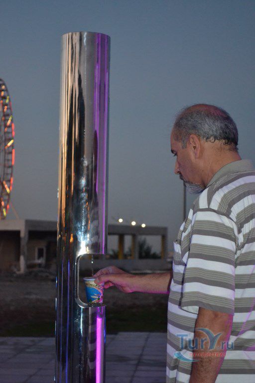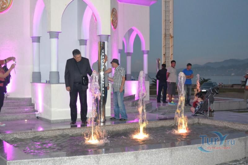 Фонтан, названный «Башня Чачи», был построен в 2012 году и представляет собой точную копию сооружения, которое украшало город Батуми в начале 20 века. Высота Башни в целом составляет 25 метров, главный купол расположен на высоте 25 метров, а остальные 4 купола – на высоте 5 метров. На высоте восемнадцати метров установлены часы. Строение окружено 4 бассейнами, оснащёнными специальными сенсорными устройствами, с помощью которых и дегустируется «чача». Самое главное, это то, что этот алкогольный напиток можно попробовать совершенно бесплатно. Правда, напиток льется не постоянно, а по расписанию: раз в неделю на протяжении 15 минут.